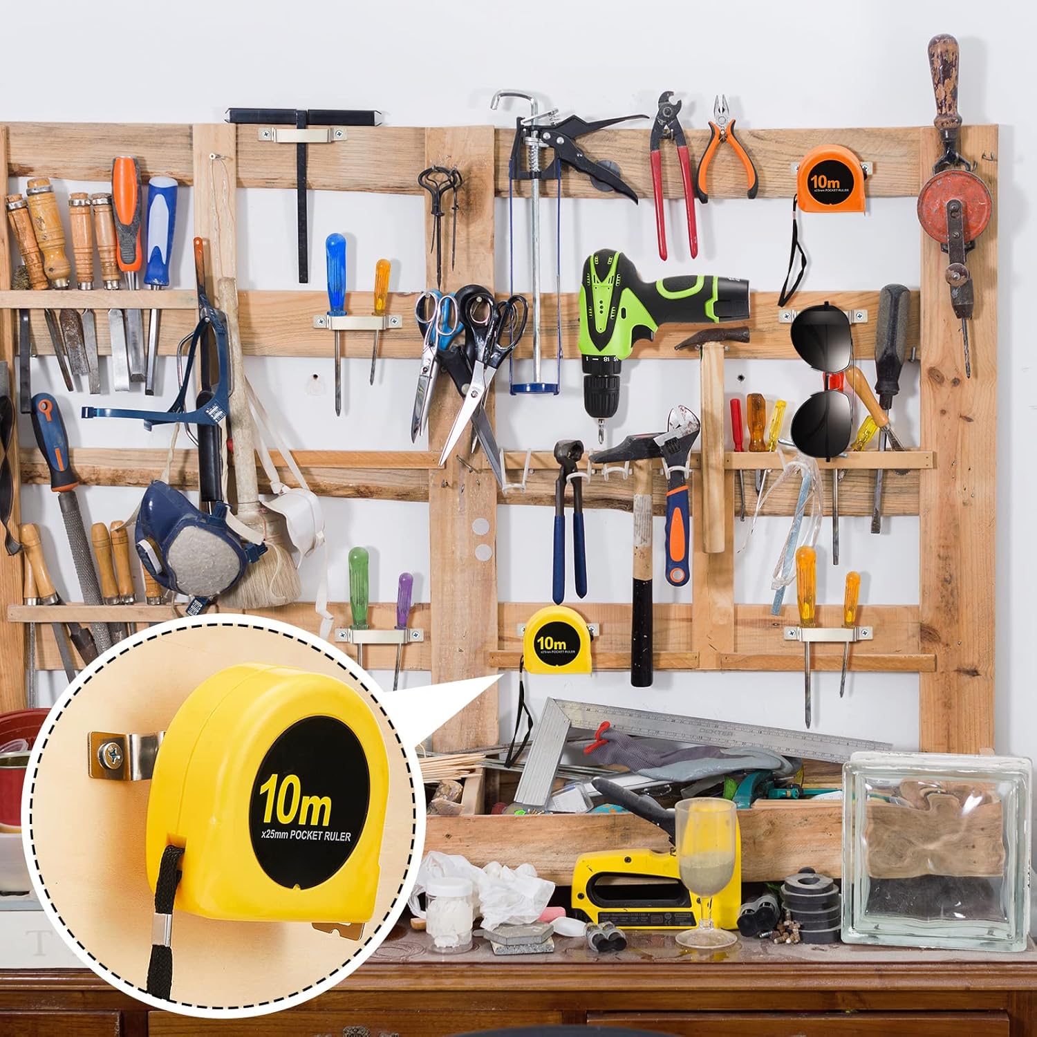 12 Pcs Tape Measure Clip Tape Measure Holder Bench Belt Universal Tool with Screws Stainless Steel Tool Hanger Storage Dock for Mount Drill Power Measures and Belt Clips (Silver)