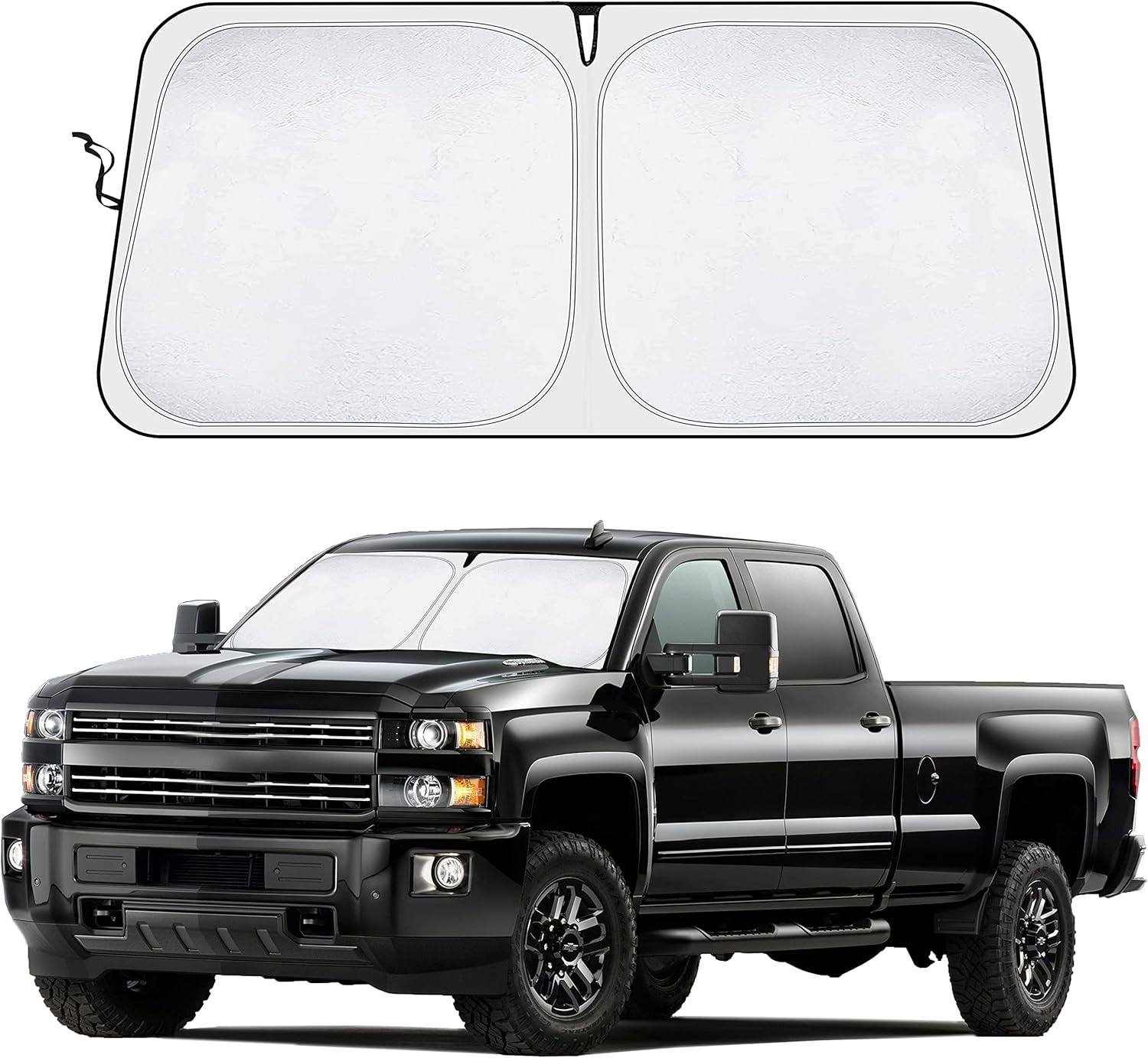 - Precision Fit for Chevrolet Silverado (2019–2025) – Specifically tailored to fit all Chevrolet Silverado models from 2019 to 2025, including WT, Custom, LT, RST, LTZ, High Country, ZR2, Trail Boss, and Custom Trail Boss trims. This front windshield sunshade is custom-cut to match the Silverado’s windshield for full coverage without gaps—providing a seamless, glove-like fit that shields your truck’s interior from UV rays and heat.