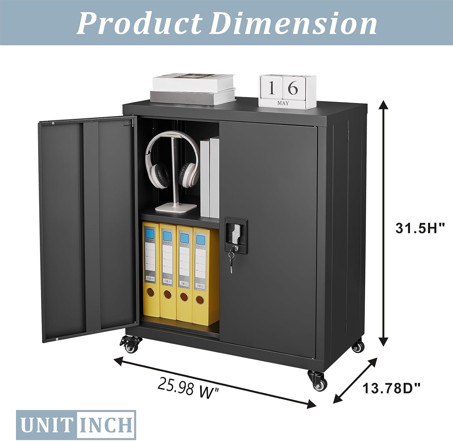 LUCYPAL Metal Storage Cabinet with Locking Doors and Wheels,Garage Storage Cabinets with 1 Adjustable Shelf for Home Office,Steel Counter Cabinet for Office,Garage,Kitchen,Black