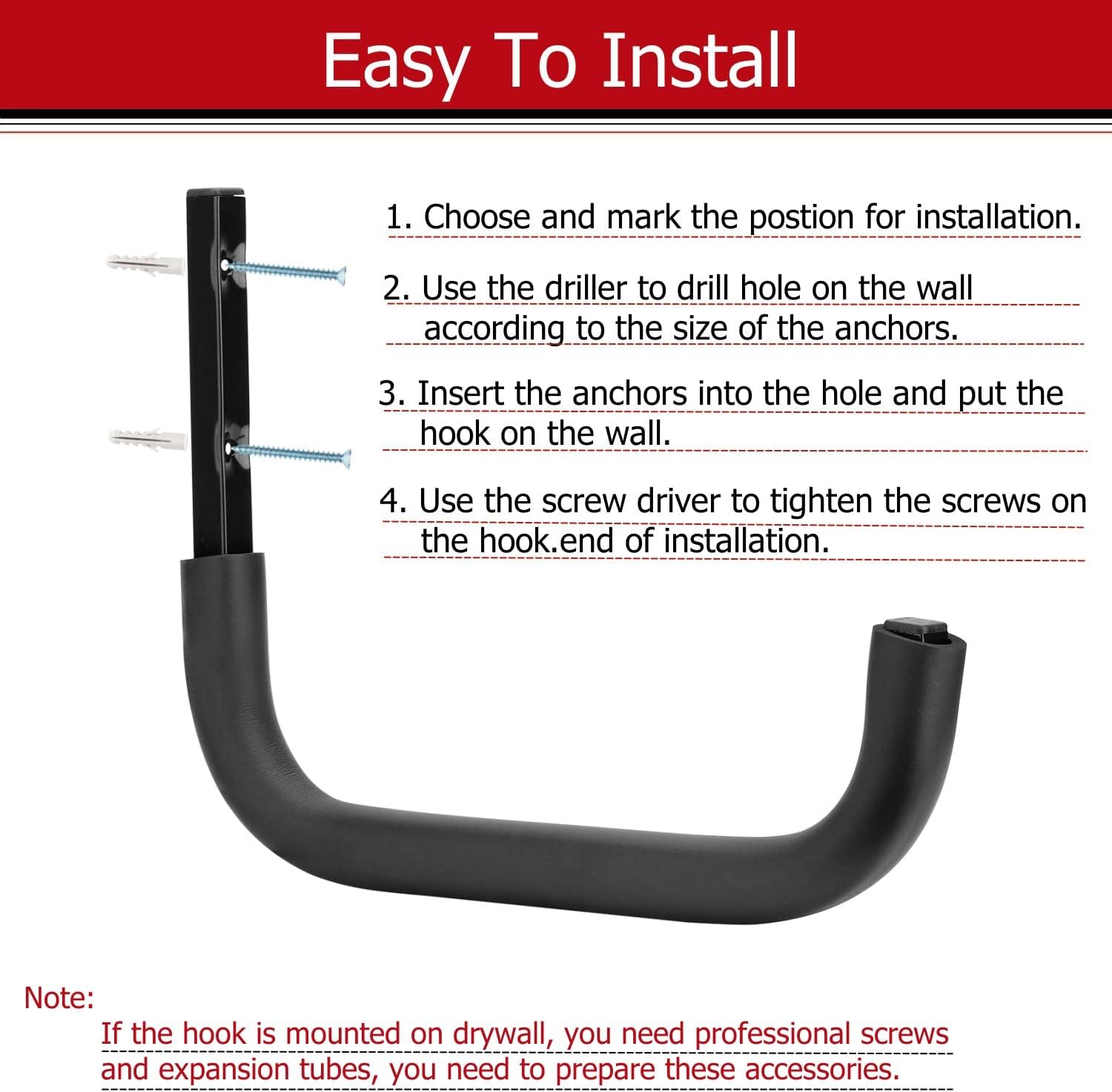 - HIGH QUALITY MATERIAL: This heavy duty storage hook is made of square tubular steel which is durable and sturdy and it’s powder coated and rust resistant. The hanger has EVA arm protector, effectively protect the tools and will not cause scratches.