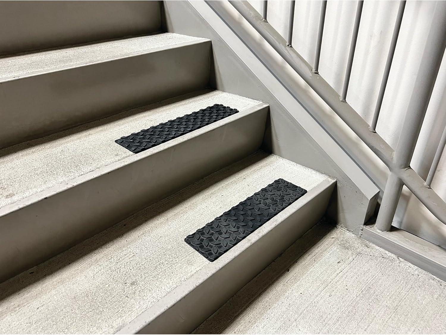 - VERSATILE USE: These mats are a great addition to any potentially slippery surface where better traction is needed, such as trailers, truck beds, cargo vans, boats, docks, ladders, stairsteps, work stations, decks, and more. This set includes two black rubber step mats.