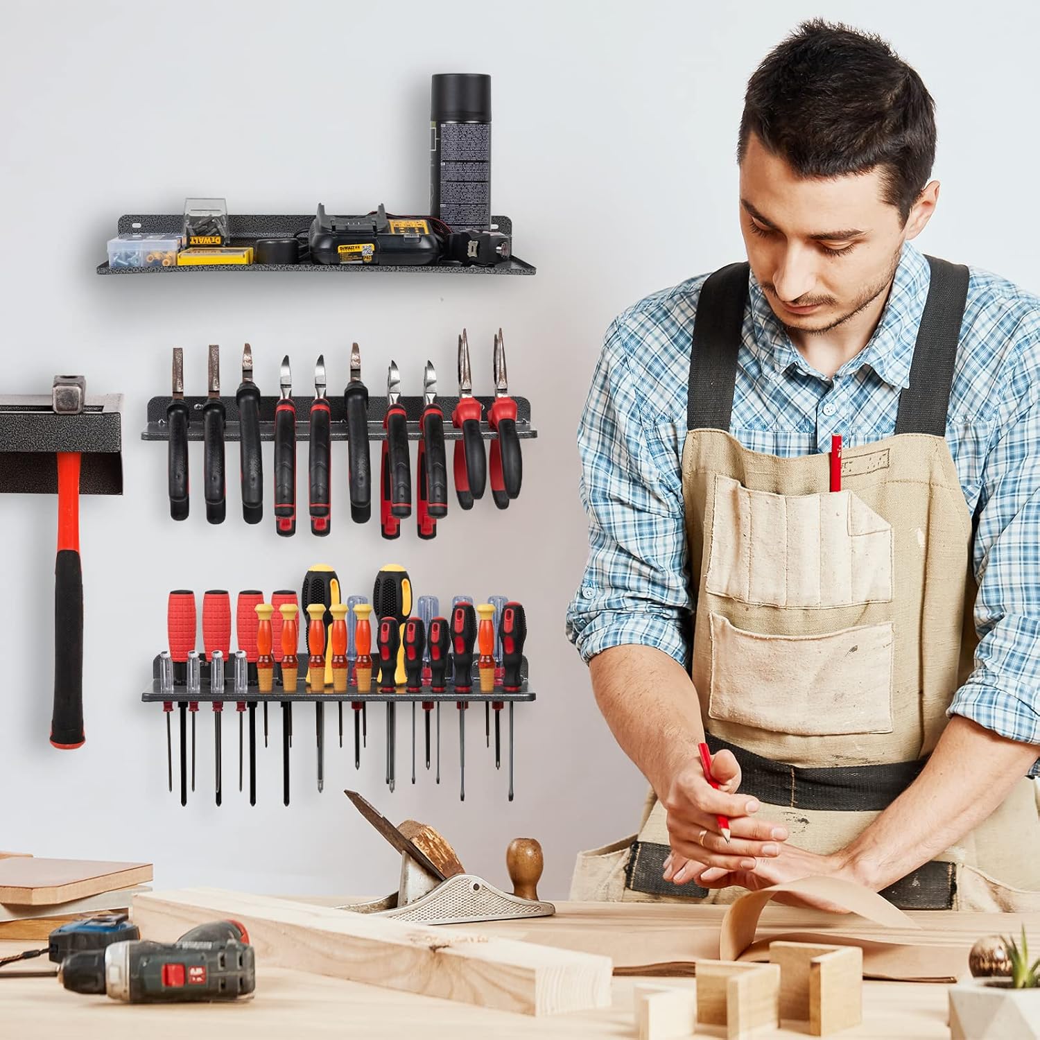 - Organize & Saving Space: 4 Packs screwdriver organizer wall mount helps you organize your messy workbench, perfectly organize all the tools, making it visible and within easy reach. It’s a great idea for keep your tools neatly organized and out of the way. (Package only includes the tool storage rack, not include the tools in the picture)