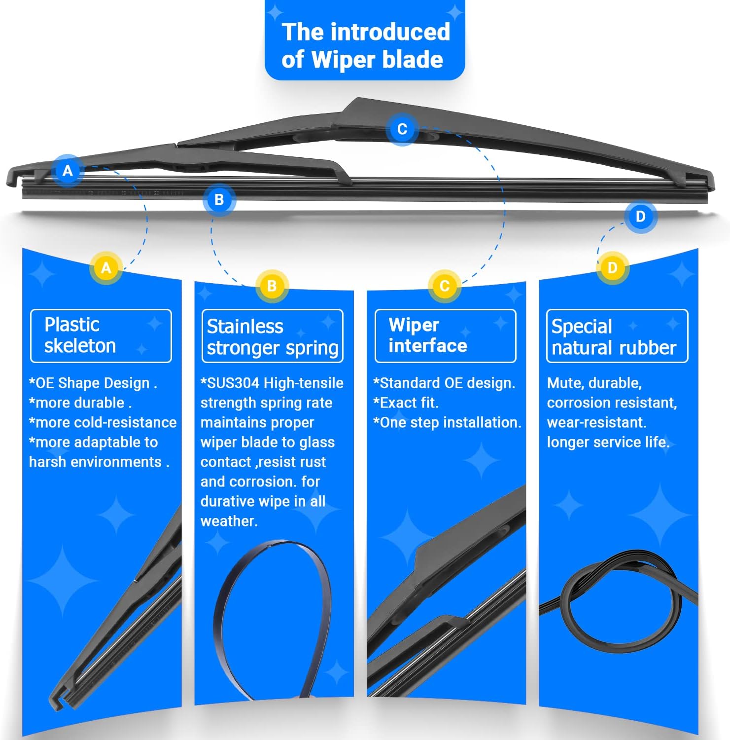 - {WIPER PERFORMANCE}: Natural rubber material making sure the wiping is the best, quiet wiping without judder or squeaking, resistant and a long service life.