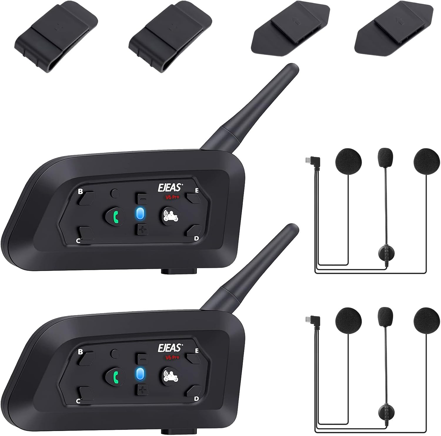 - 【2-Way Intercom & 6 Riders Pairing】V6 Pro is a 2-way full duplex motorcycle bluetooth intercom. 2 riders can freely share the riding experience and enjoy the conversation within the ultra-long intercom range of 1000 meters. Besides, it allows up to 6 riders to pair together easily, including 1 host and 5 submachine.