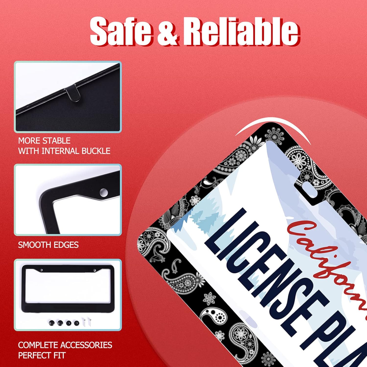 - 【Stable And Strong】: The edge is designed with arc, and the back has two inner clips to stabilize the license plate frame. It will not make any noise during driving and will not affect your driving experience.