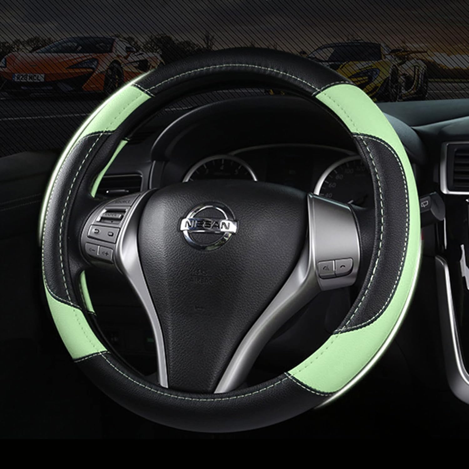 Leather Car Steering Wheel Cover, Non-Slip Car Wheel Cover Protector Breathable Microfiber Leather Universal Fit for Most Cars (Green)