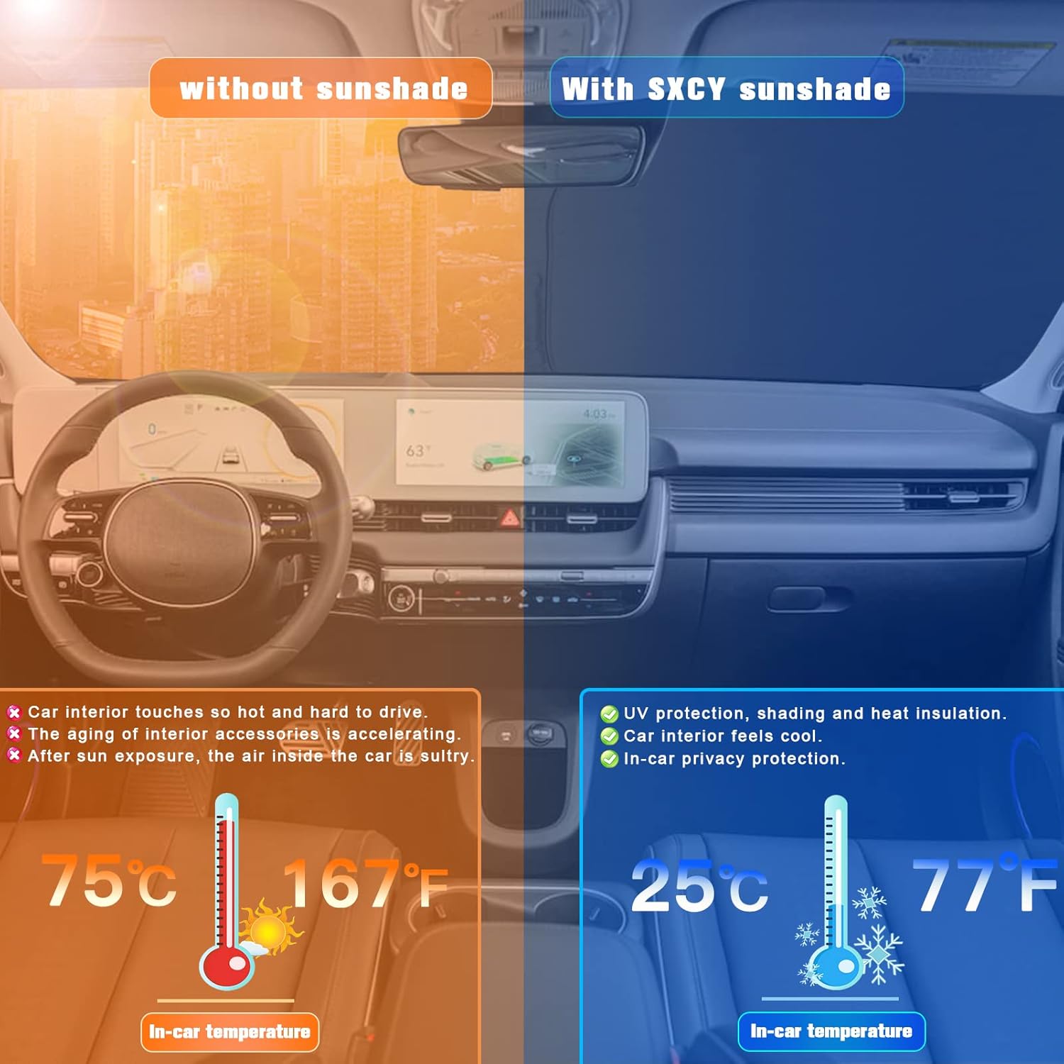 SXCY 2022 2023 2024 2025 Ioniq 5 Windshield Sunshade 2023 2024 2025 Hyundai Ioniq 5 Accessories 2022-2025 Ioniq 5 Sunshade Foldable Sun Shield 2023 2024 2025 Ioniq 5 Sunshade Block UV Rays