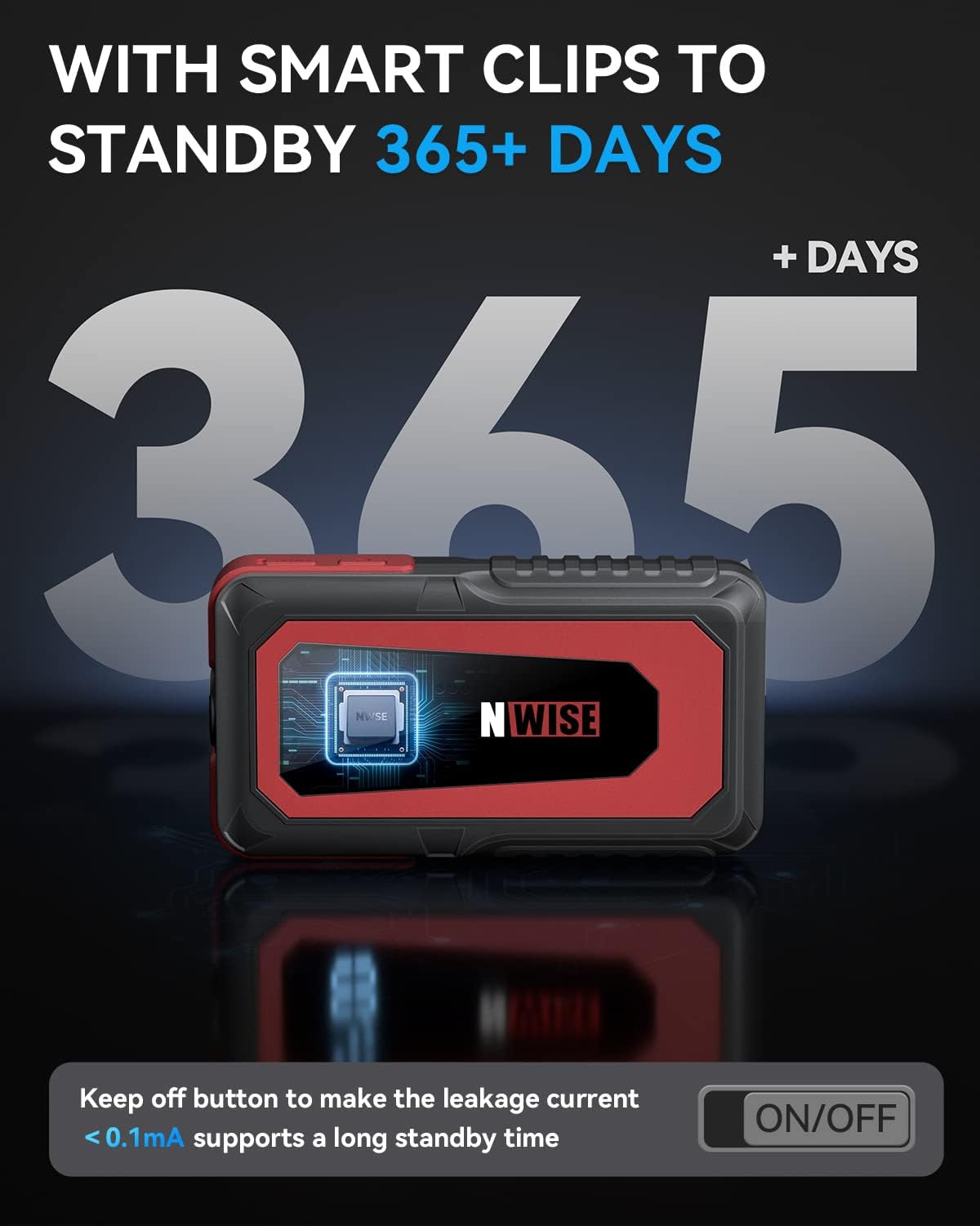 - Intelligent Protection Systems:NWISE TP20PRO Jump Starter for vehicles works with smart jumper clamp which provides 10 safety protections to ensure it's safe to use,The red/green indicator and audible buzz prompting whether it is used correctly.