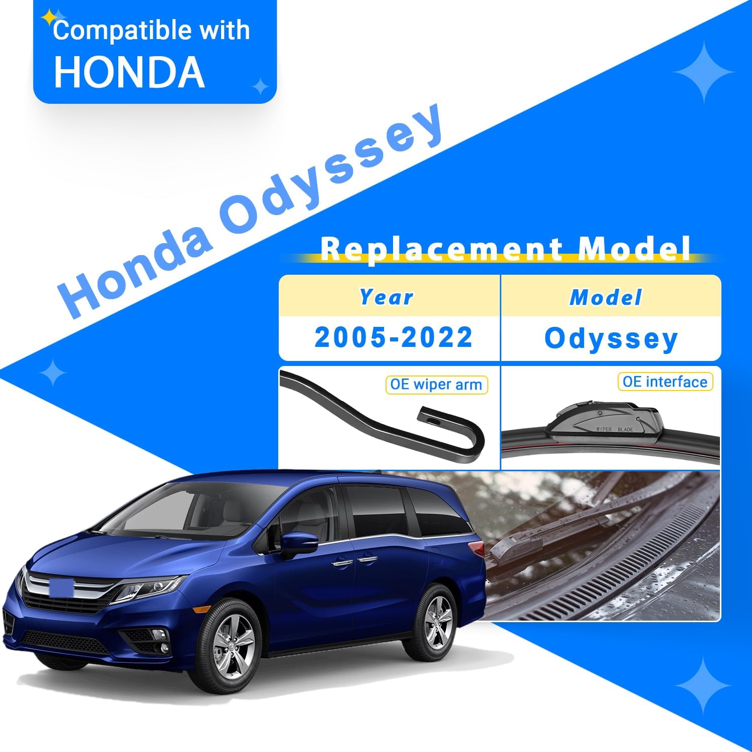 - FITMENT:Windshield Wiper Blades for 2005-2022 Honda Odyssey