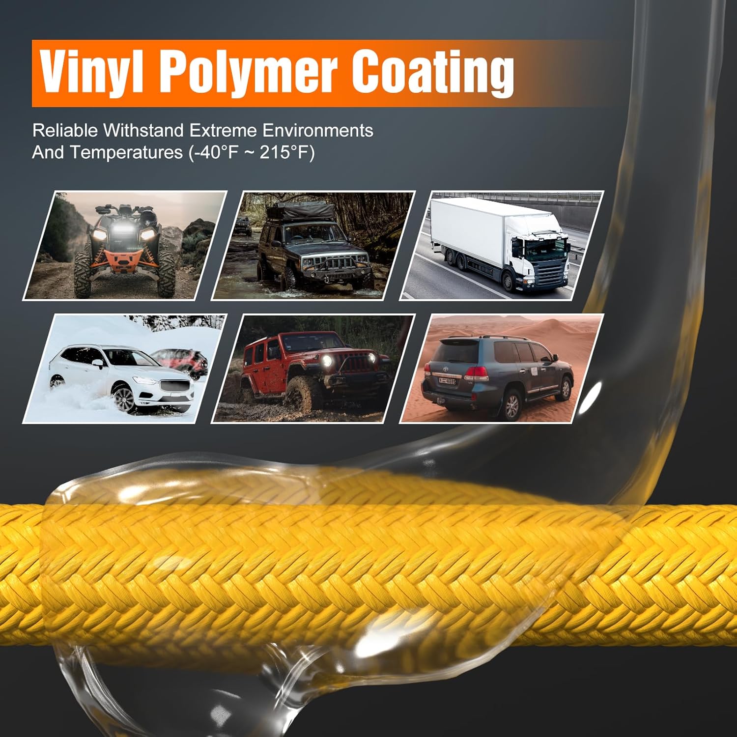 - [Easy to Use] The kinetic recovery tow strap is designed for easy to use. Contains two soft shackles, simply attach one end of the rope to the recovery vehicle and the other end to the stuck vehicle. With its high-visibility color, the rope can be easily spotted even in dim conditions.
