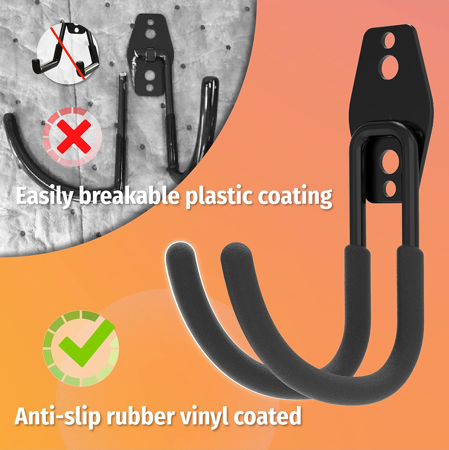 - Premium Finishing: Coated with Anti-slip rubber, our garage hooks heavy duty can prevent storage hooks and heavy duty items from slipping and scratches.