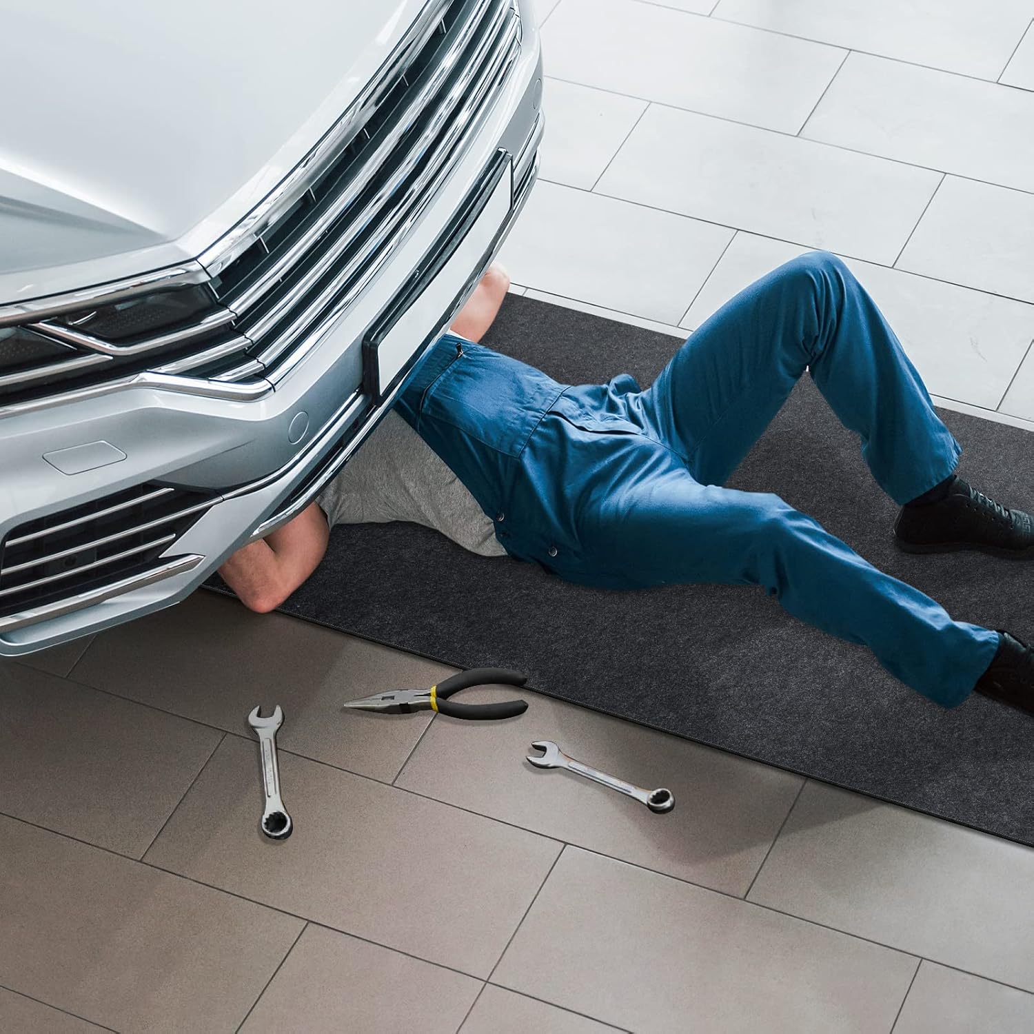 - Reusable and Easy to Clean: The garage mat is made of compact and thick felt structure and this premium material is extremely reusable, excellent anti-wear, anti-tear for a long-time use. You can simply flush with water gun, or scrub with soap or detergent if needed, air dry. Do not blench.