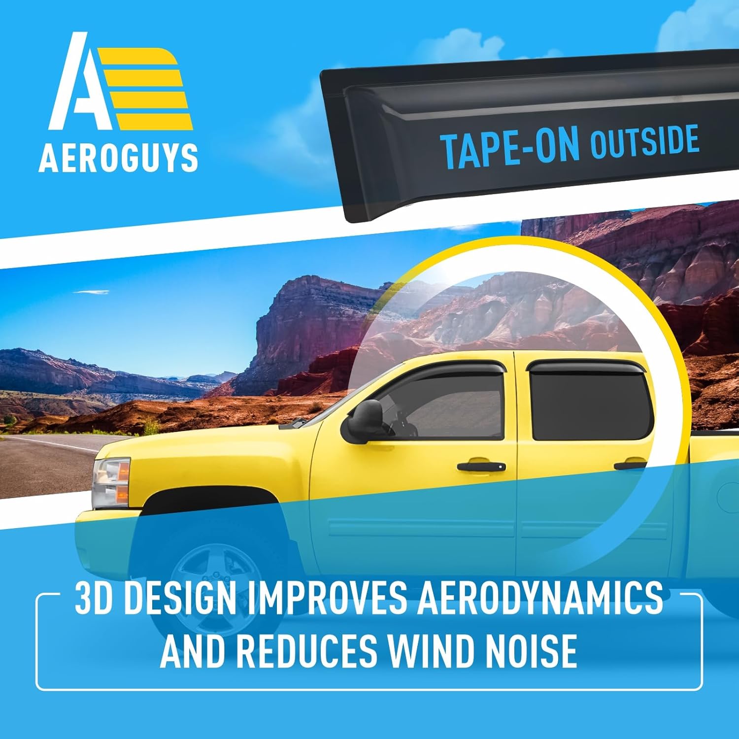 - No Tools Needed, Quick and Easy Assembly – These rain guards are very easy to fit. TAPE-ON INSTALLATION provides perfect fit for your truck. Just slip it onto your car’s window and your job is done within minutes. There is no drilling or no tools required. Be sure that AEROGUYS window deflectors are water resistant, sun protective and will not bend, break or crack regardless of the weather conditions.