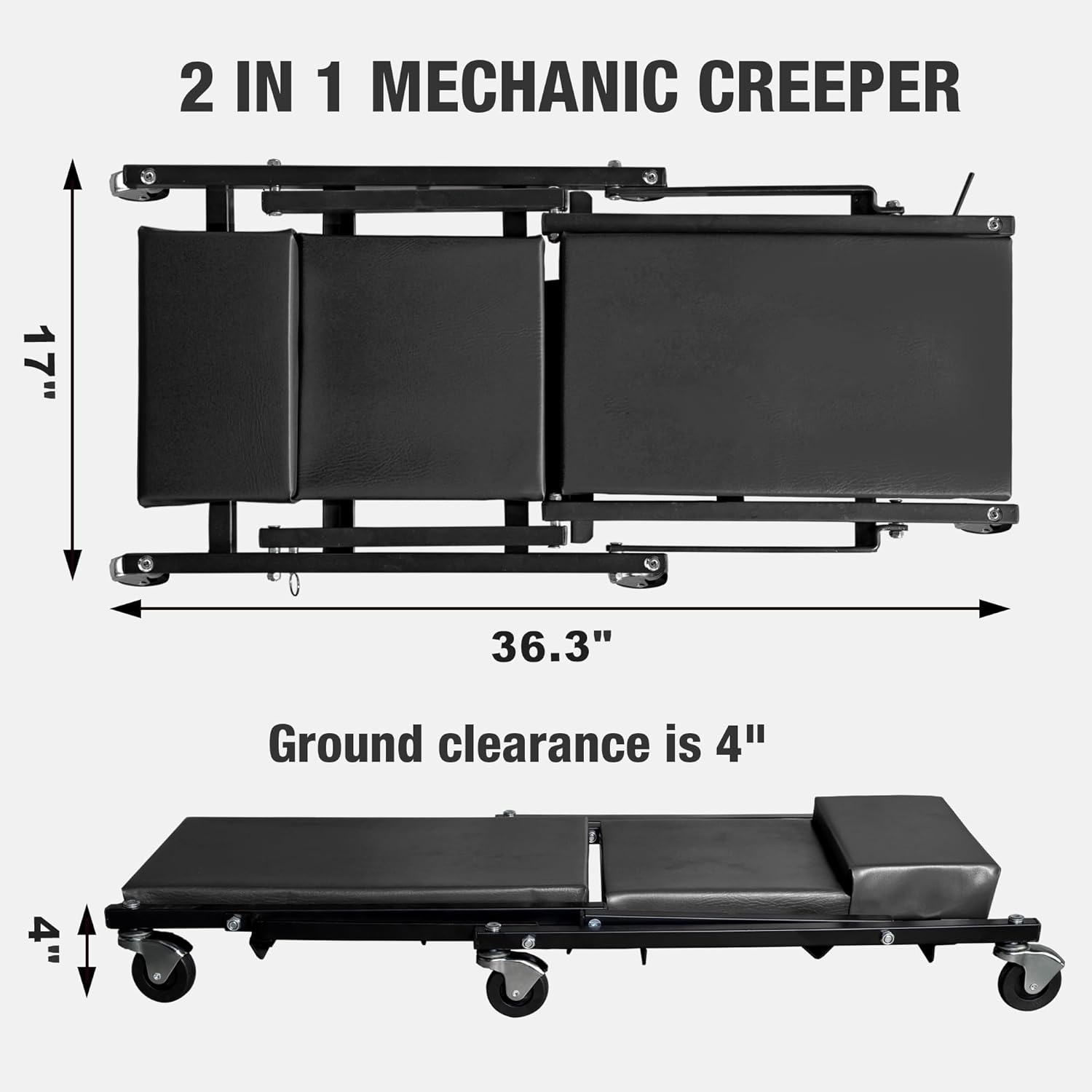 - Foldable Design:You can foldable Creeper to stool easily,makes your maintenance work more effortless.When you have it,whether it's car bottom repairs or other work,reduce your physical fatigue