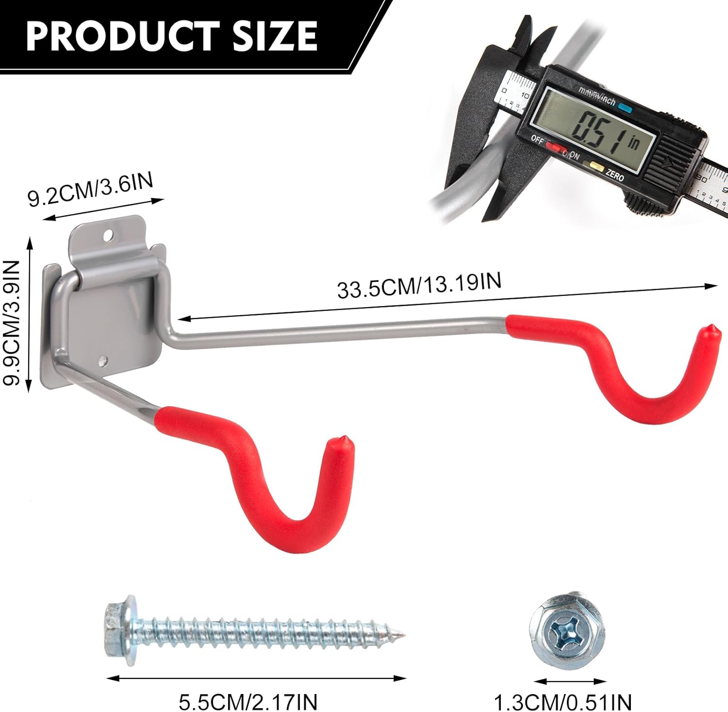 - 【PRODUCT DETAILS】2*Bike Rack Wall Hook.Screws: 4 pcs.Dimensions: (L) 13" x (W) 4.5" x (H) 2". Weight Capacity of Wall Hangers: 50 lbs. Includes Four 2-Inch Wall Mounting Screws for Mounting the Bike Rack Directly into Wall Studs.