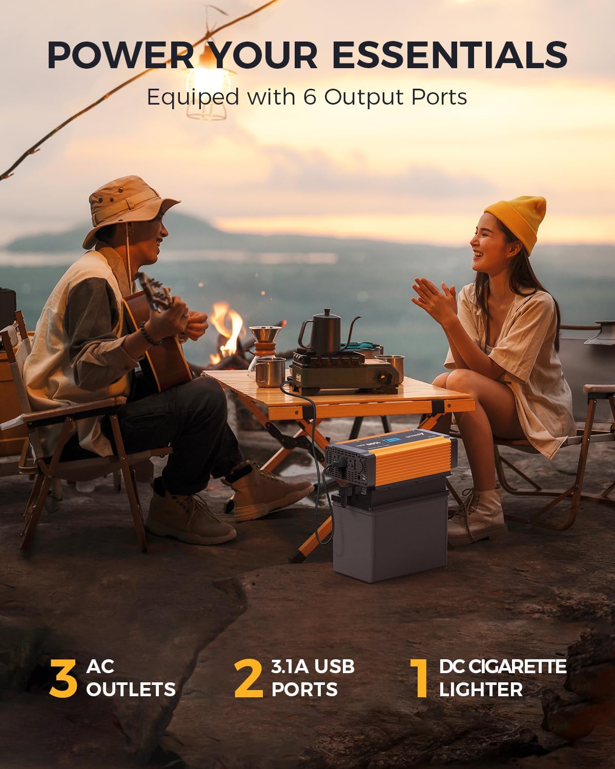 - 【The Well-Built 1500w Power Inverter DC 12V to AC 110V 】Provides 1500 watt continuous power, converts 12V dc battery power to standard 110V ac, features 2USB ports (3.1Amps each), 3AC outlets(each outlet support 1500w,need consider efficiency), DC cigarette lighter,6AWG and 2.63ft long battery cable included, This economically designed inverter caters to the power needs of appliances below 1500W.
