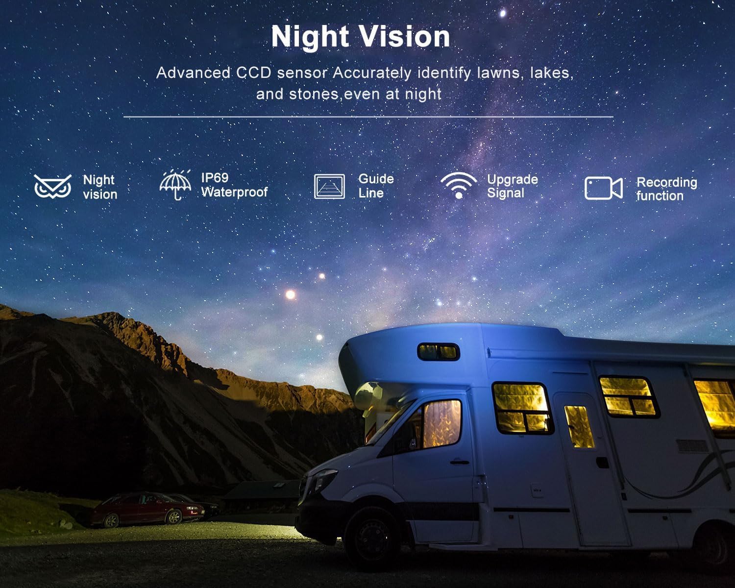 - 【Night Vision & IP69 Waterproof】 Infrared Light and CCD Sensor accurately to capture crisp images from even in the dim condition. Closed with a Metal Gel, still work for you even at Rain /Snow/Fog, provide you all day intimate monitoring.
