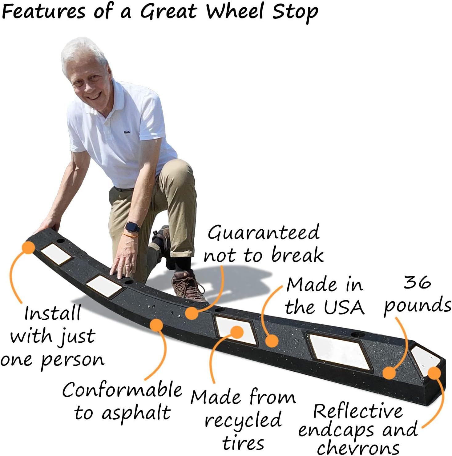 - PARKING LOT ACCESSORIES. Install these in your garage or driveway to keep the front of your vehicle safe from damage. Pack includes 10 Parking Wheel Stops, each of size - 4 x 72 x 6 inch (H x W x D).