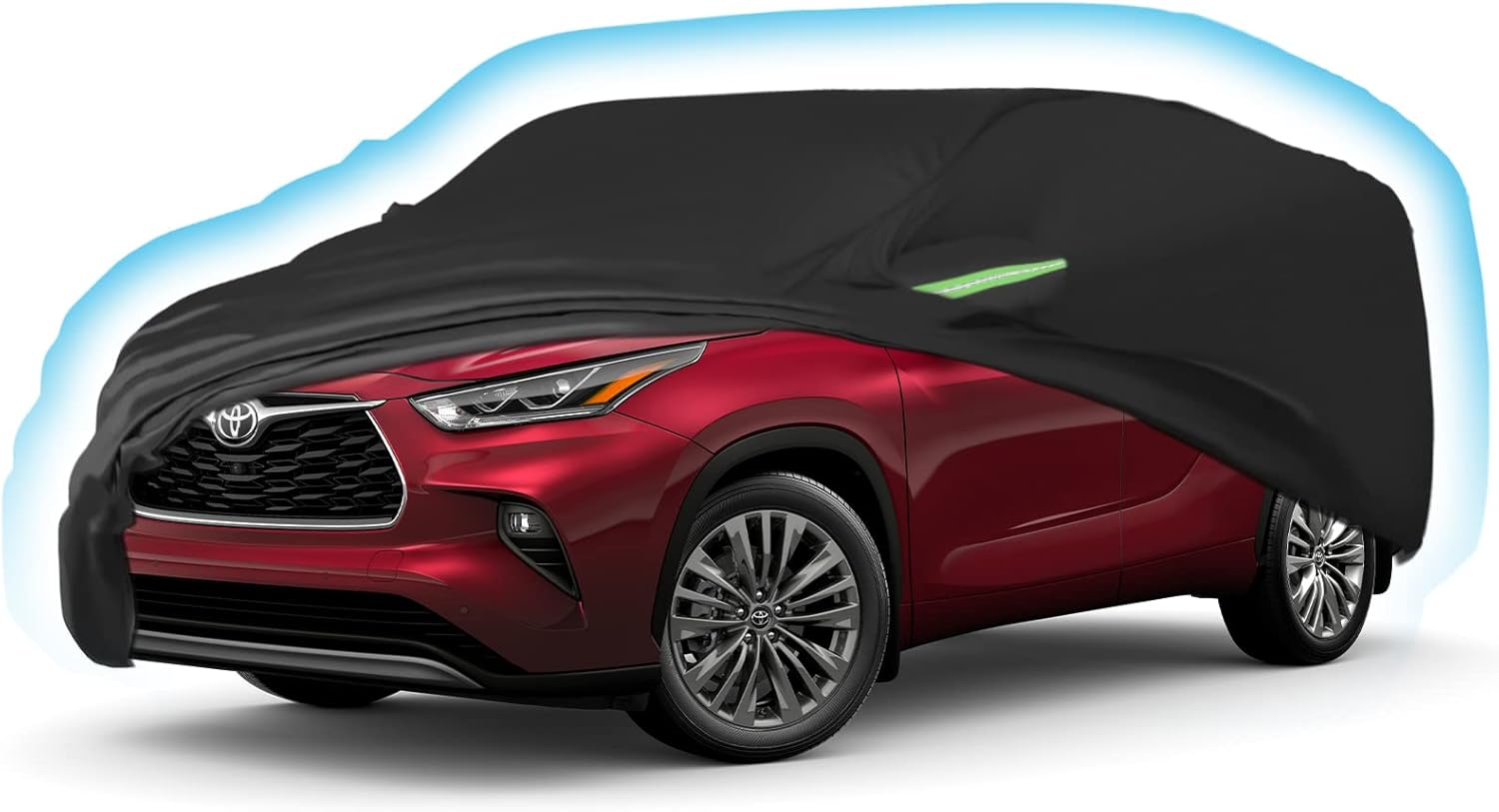 Proadsy 2025 Upgrade Car Cover for Toyota Highlander 2020-2025, Waterproof All Weather, Windproof Snowproof Rain Hail Sun UV Protection Full Outdoor Indoor Exterior Car Covers, Black