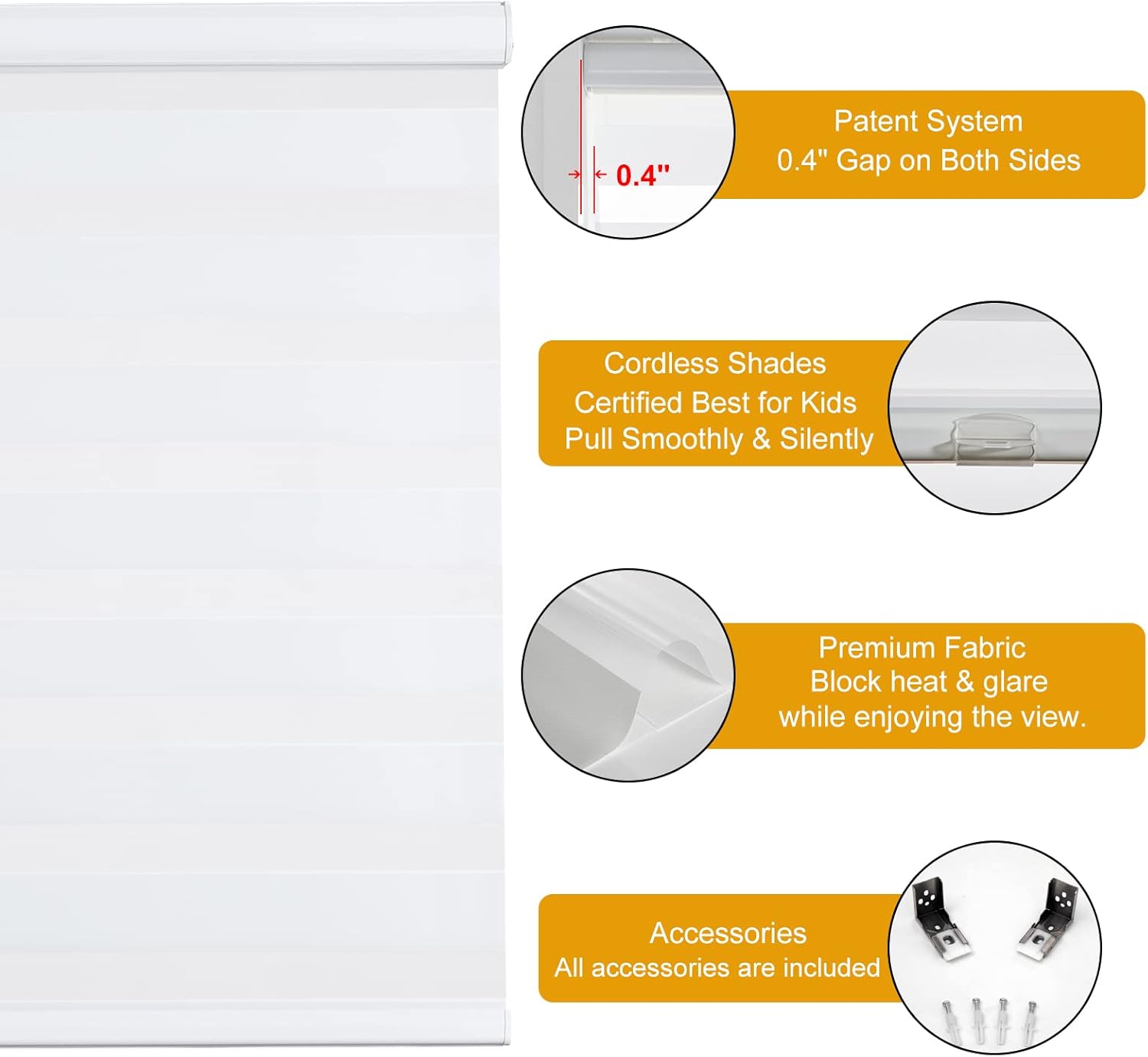 Persilux Cordless Zebra Blinds for Windows (59" W X 47" H, White) Free-Stop Dual Layer Roller Windows Shades for Day and Night, Light Filtering Sheer Shades for Home, Bedroom, Easy to Install