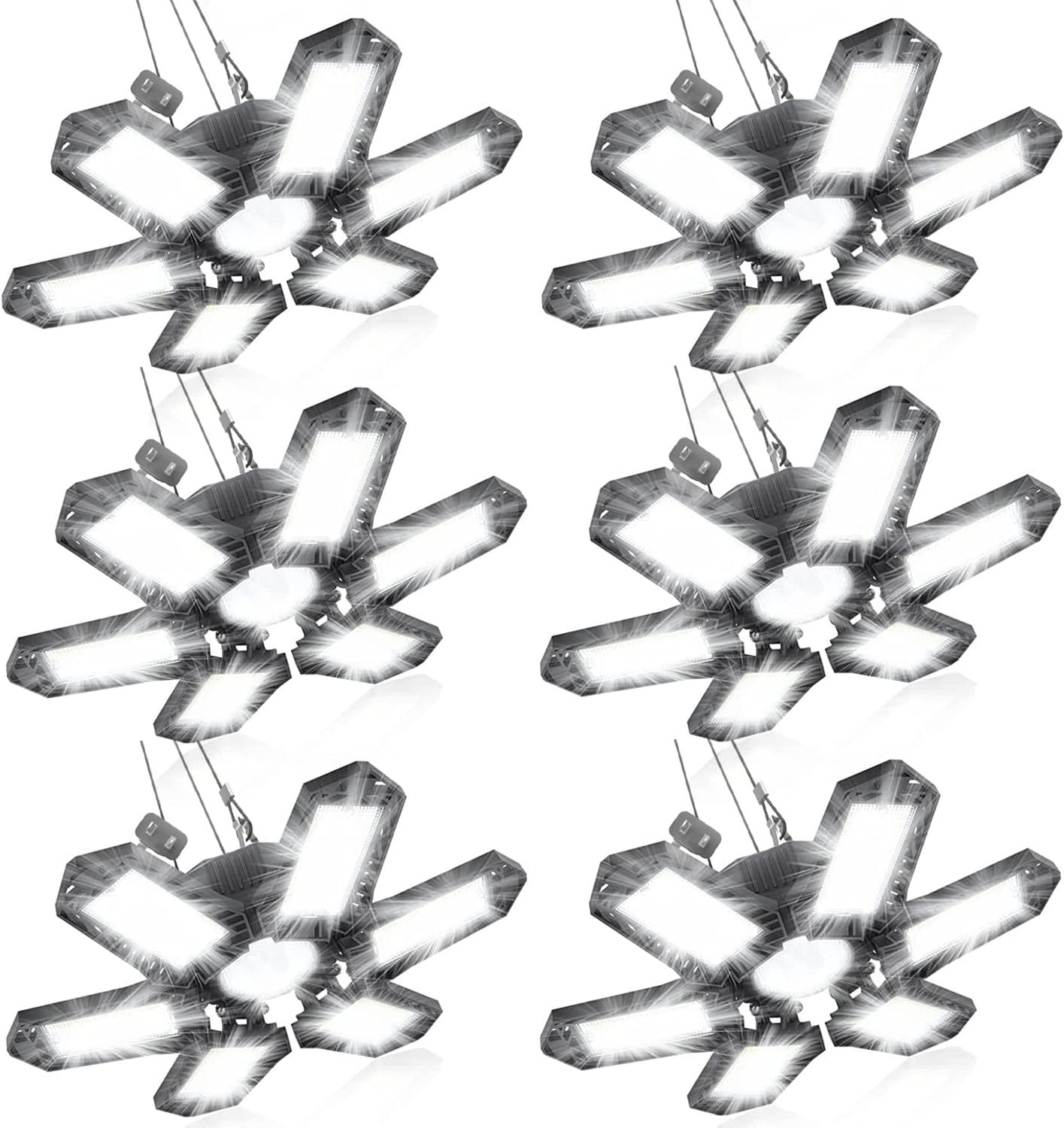 - Deformable Design: Unique wide-angle lighting design with 6 adjustable panels. Each light panel can fold 90 degrees, allowing the shop light to cover a 360-degree area with no dark areas, ghosting or glare. Perfectly solve the problem of uneven light on 4-panel and 5-panel, while protecting your eyes