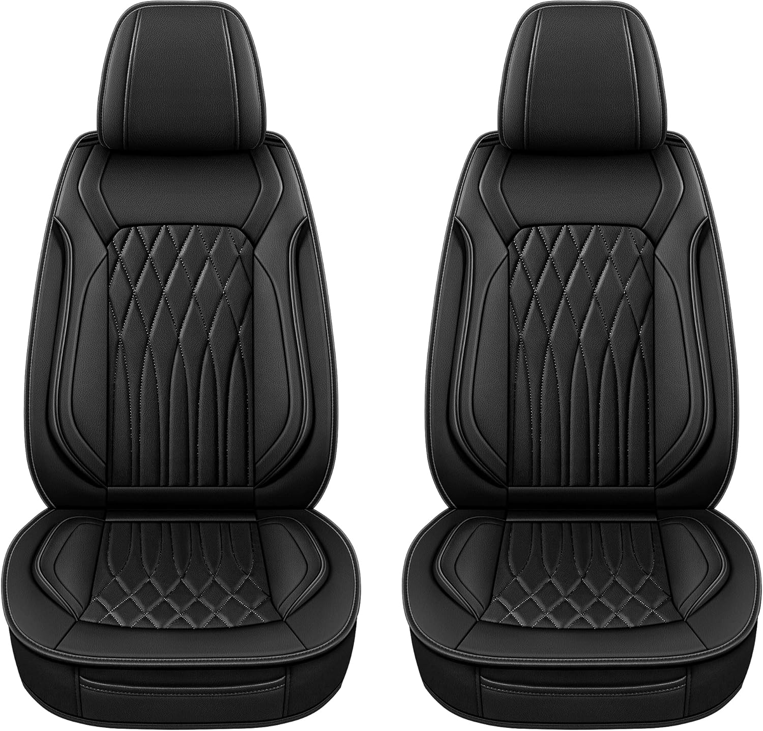 Pariitadin Leather Car Seat Covers Front Pair, Waterproof Faux Leather Seat Covers for Cars, Non-Slip Car Interior Covers Universal Fit for Most Cars Sedans Trucks SUVs, Black Line