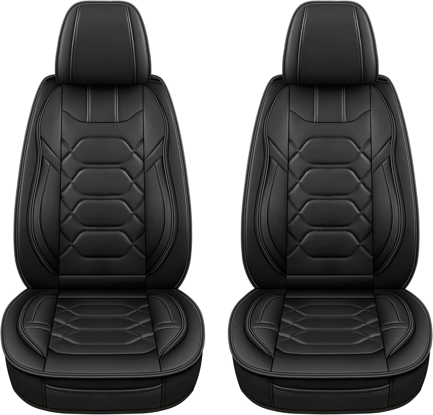 Pariitadin Leather Car Seat Covers Front Pair, Waterproof Faux Leather Seat Covers for Cars, Non-Slip Car Interior Covers Universal Fit for Most Cars Sedans Trucks SUVs, Black