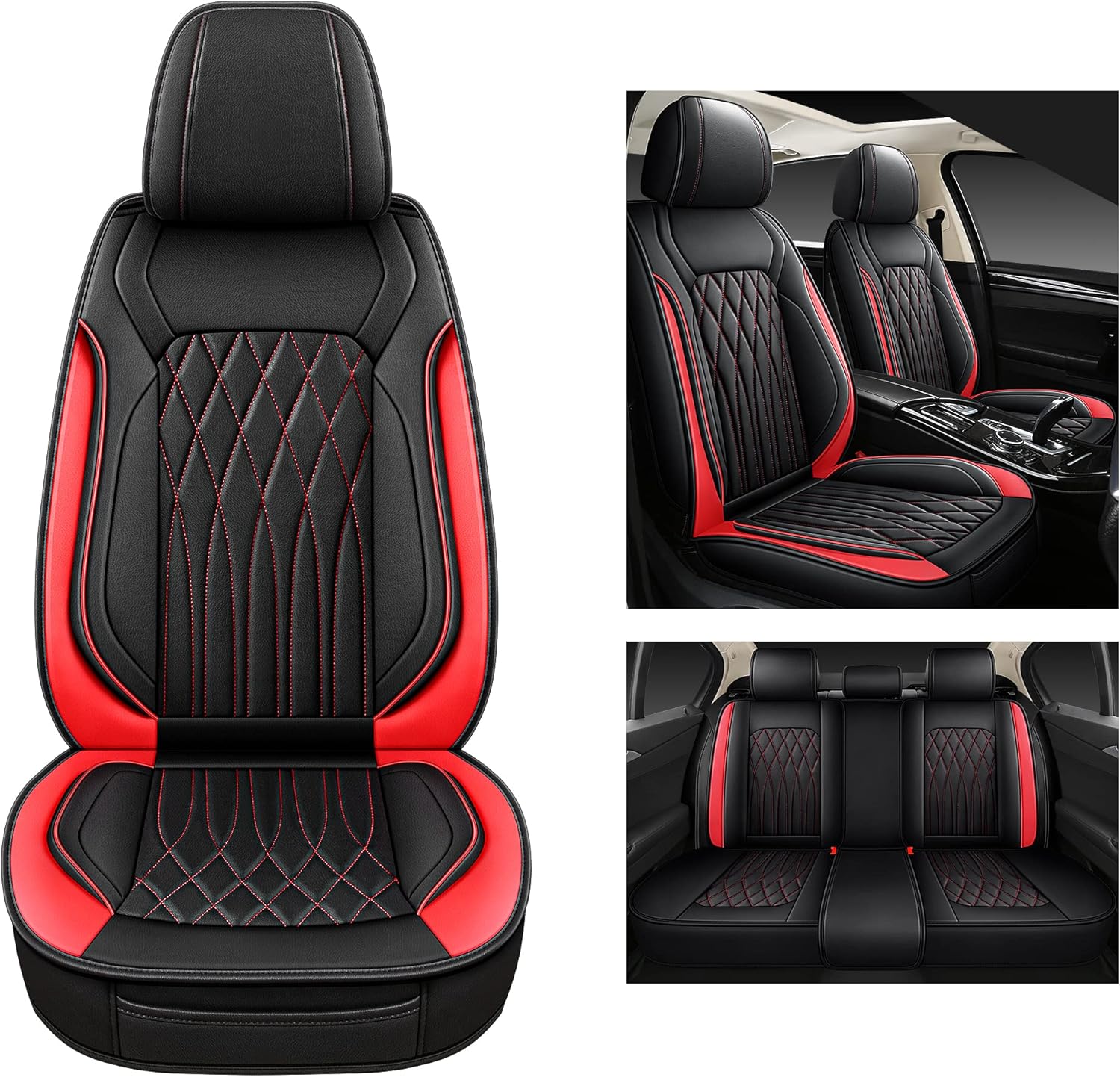 - Premium Material: Made of high-grade leatherette materials, Waterproof, Durable Wear-resistant and Easy to Clean. Protecting your car seats from damage, spill or stain in all directions. Equipped with thick, premium High-Density Foam to create top resilience for maximum comfort during your drive.