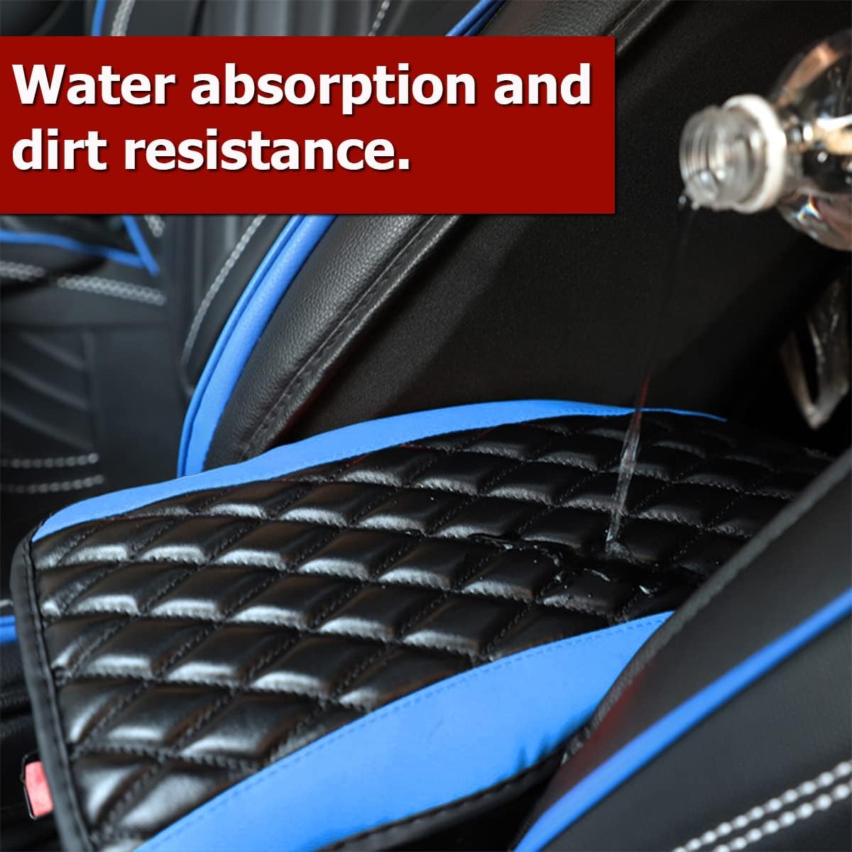 Car Center Console Cushion Pad, Universal Leather Waterproof Armrest Seat Box Cover Protector,Comfortable Car Decor Accessories Fit for Most Cars, Vehicles, SUVs (Blue)