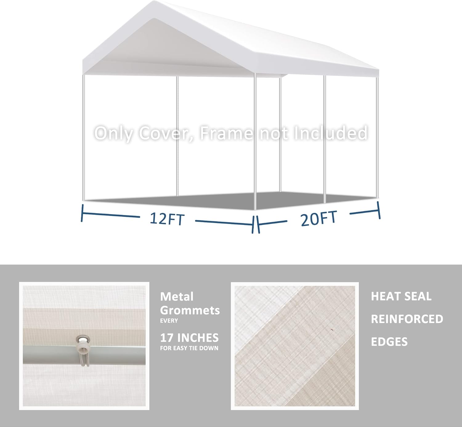 - [Carport Canopy with Edge] 12'x20' With Edge, This Carport Replacement Canopy Cover is made to fit 12'x20' frames. We recommend measuring the frame before purchasing.