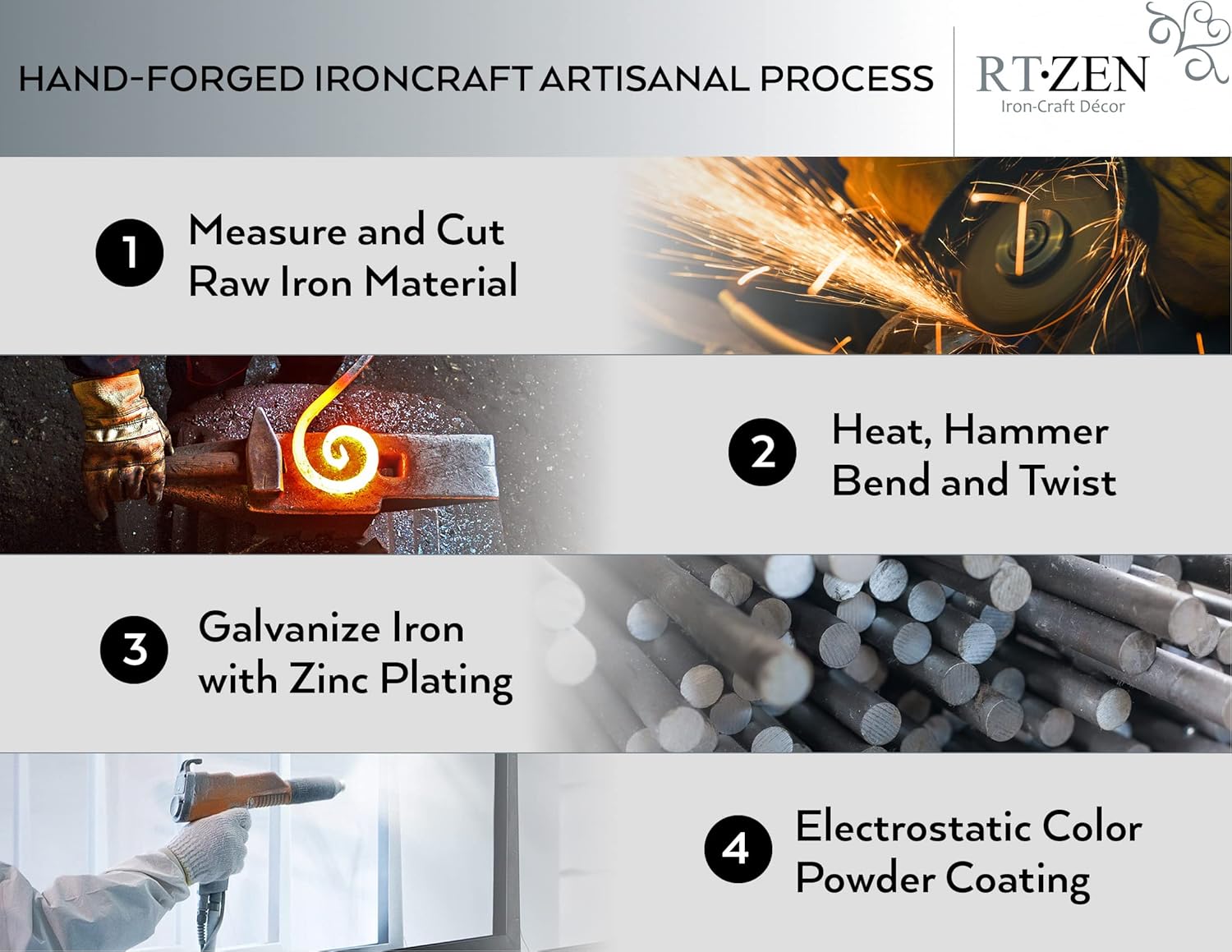 - Material : Zinc Plated & Powder Coated Wrought Iron