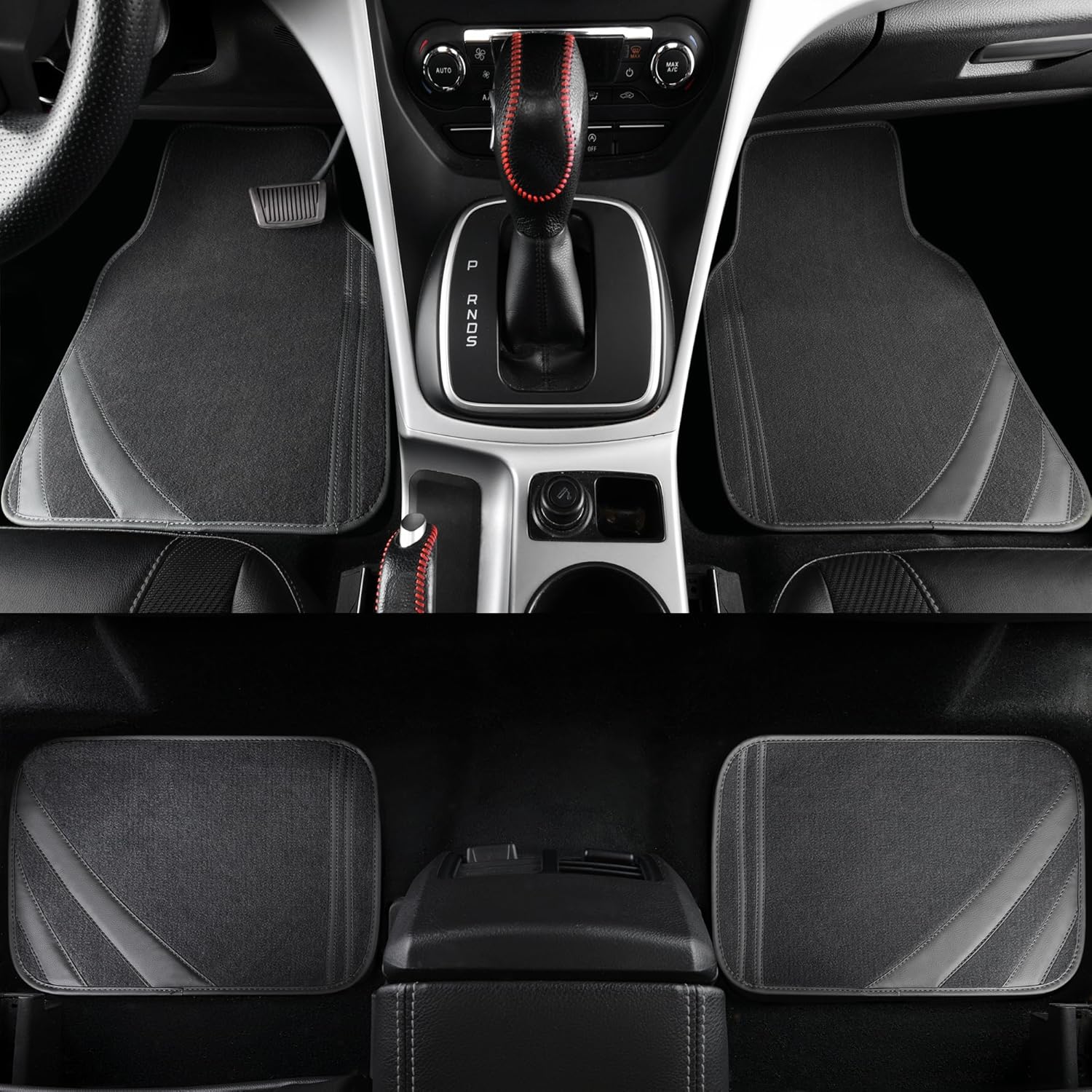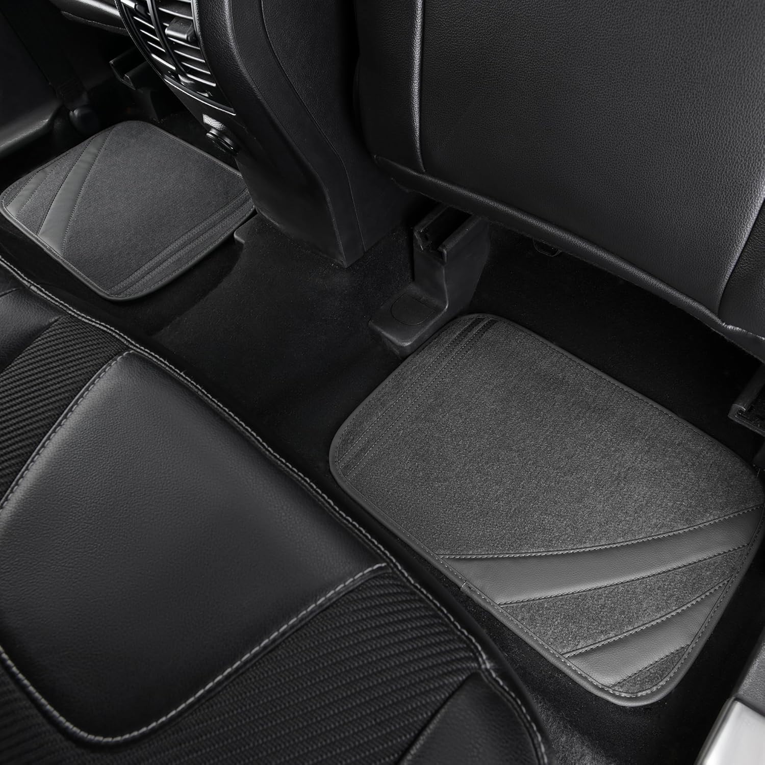 - High Quality- The edges and lines are made of leather and double stitched for superior quality. The center carpet portion is soft and thick, which traps dust and dirt well and Protect your vehicle's flooring against spills, stains, dirt and debris.