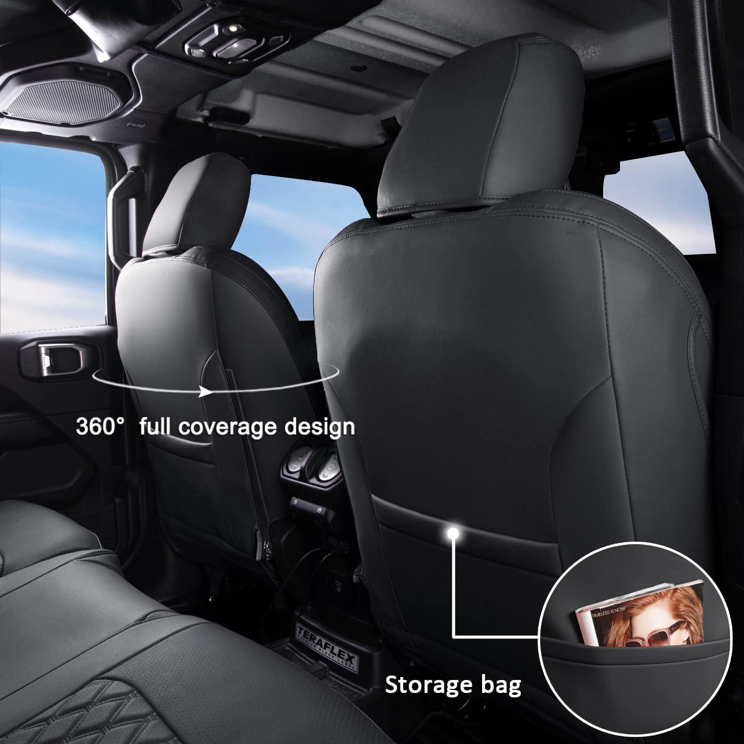- 【CUSTOM FIT】 - A full set of seat covers customized according to the original car seat size 1:1, which will fit Wrangler JL 4 Door 2018 2019 2020 2021 2022 2023 2024 2025 (with Rear Cup Holder) like a glove.