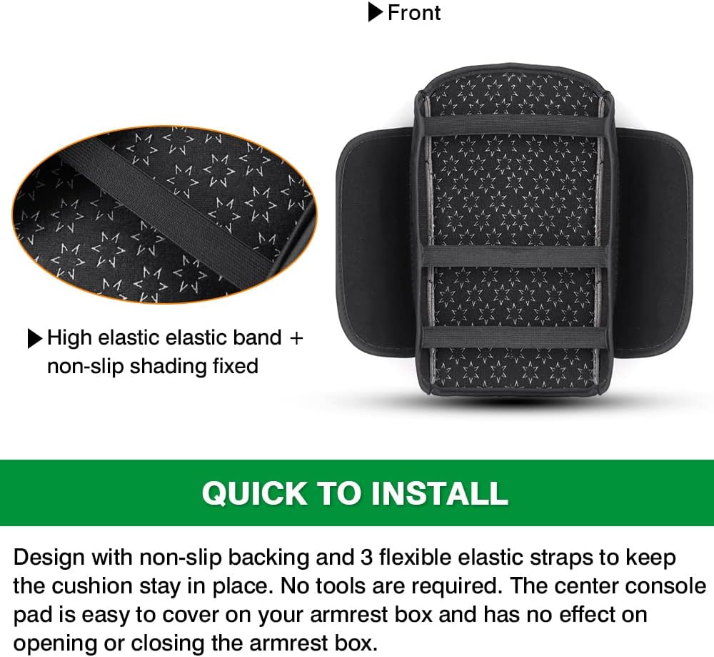 - Improve Driving Experience: Comfortable enough for your elbow, arm and wrist to relax on this nice armrest padding. Stress off your elbow while driving and keep your arm from sweating on the center console pad.