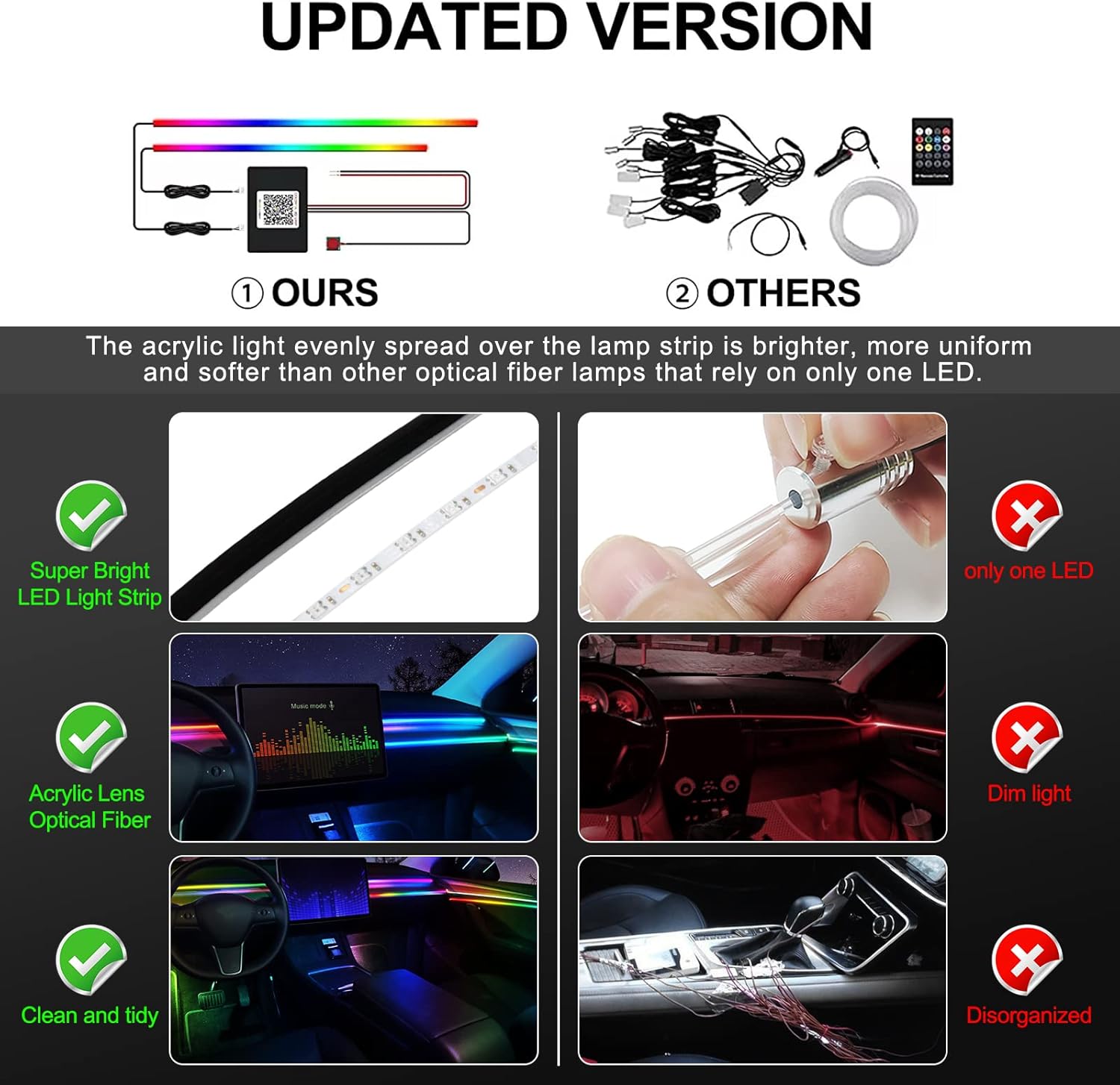 Acrylic Interior Car LED Strip Light with Wireless APP, RGB Dreamcolor 2 in 1 Ambient Lighting Kits, 16 Million Colors Sound Active Function Car Neon Lights, Sync to Music (dreamcolor 2 in 1)