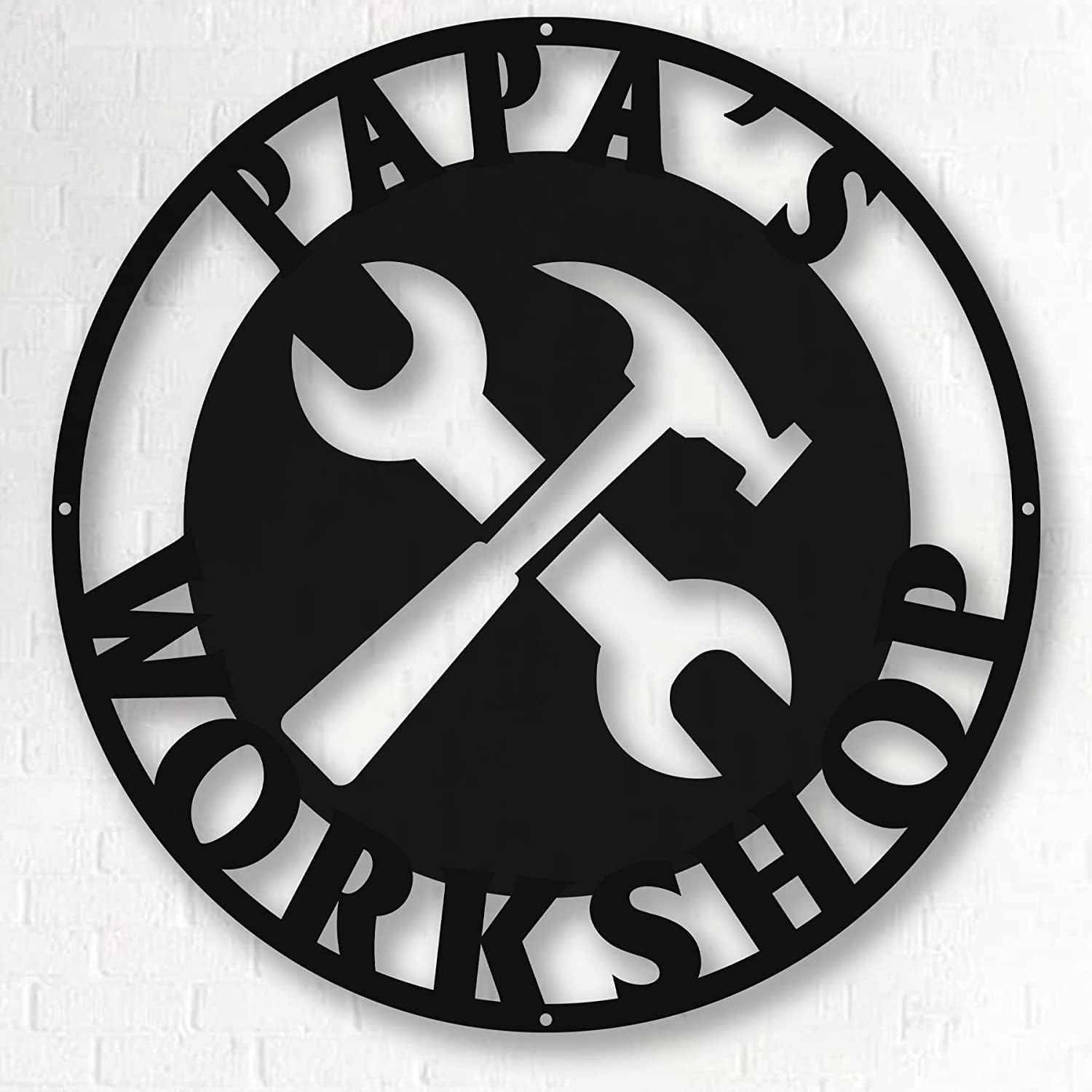 Personalized Papa's Workshop Metal Sign - Custom Dad's Garage Wall Decor for Mechanic, Birthday Gift for Men, Boyfriend - Fathers Day Workshop