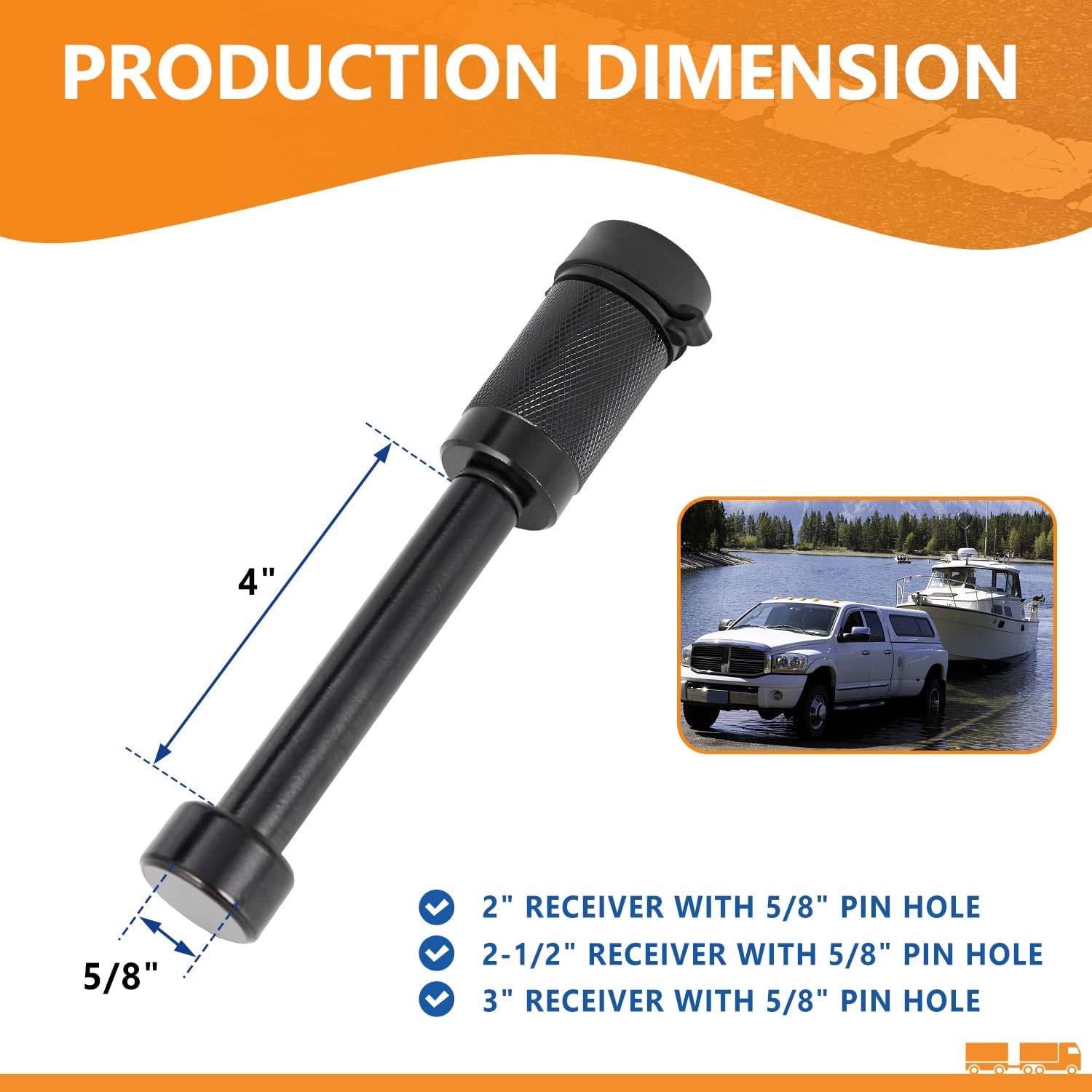 - 【UNIVERSAL COMPATIBILITY】- 5/8" diameter with 4” long trailer hitch locks fits most class III IV V 2" 2-1/2", 3" & 3-1/2" hitch receivers. The hitch lock also can be used for tray tow rope of trailer, truck, car, bike and boat.