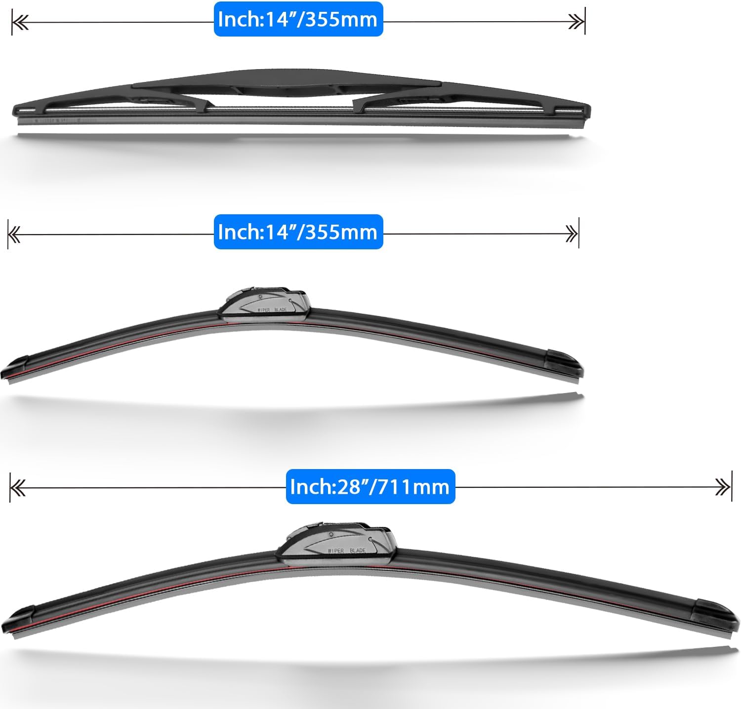 - {WIPER PERFORMANCE}: Natural rubber material making sure the wiping is the best, quiet wiping without judder or squeaking, resistant and a long service life.