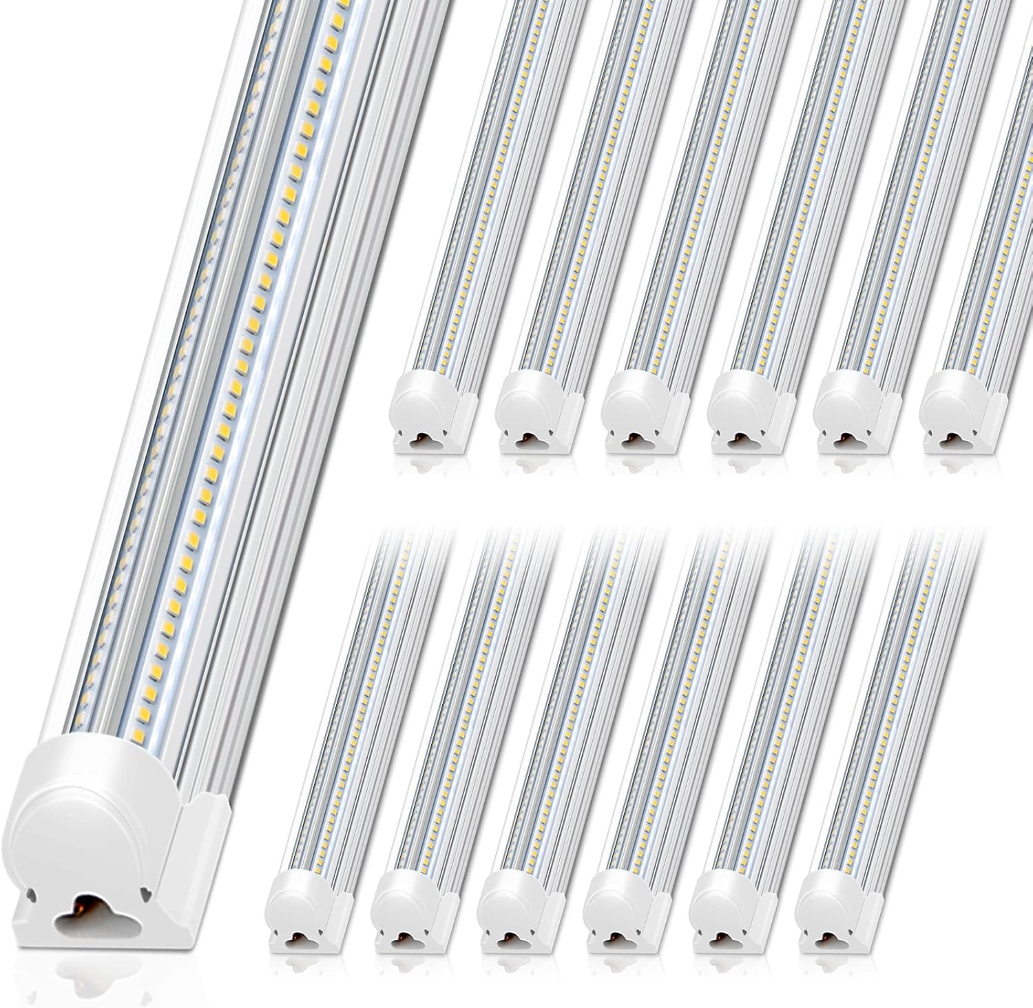 Barrina 8FT LED Shop Light, 100W 15000LM 5000K, Clear Cover Linkable Led Tube Lights, V Shape Integrated T8 LED Lighting, LED Ceiling Lights for Garage, Warehouse, Workshop, ETL Listed, 12 Pack