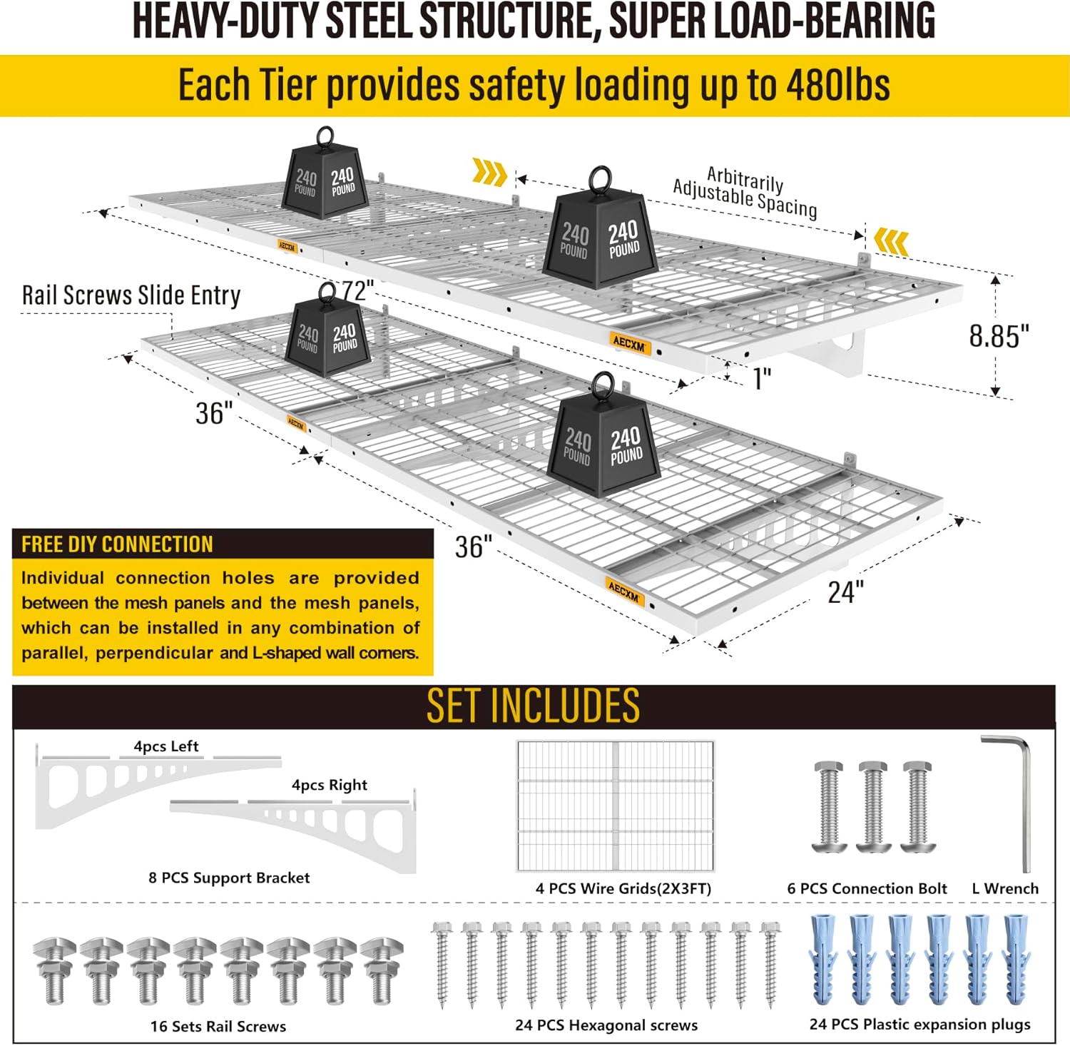 - Customer Support: Aecxm offers full after-sales service to protect your purchase. Contact us anytime for assistance. (Note: For brick or concrete walls, use expansion anchors to securely fasten the heavy duty wire shelving after drilling.)