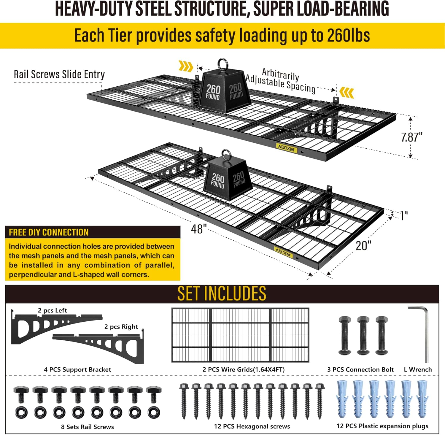 - Customer Support: Aecxm offers full after-sales service to protect your purchase. Contact us anytime for assistance. (Note: For brick or concrete walls, use expansion anchors to securely fasten the heavy duty wire shelving after drilling.)