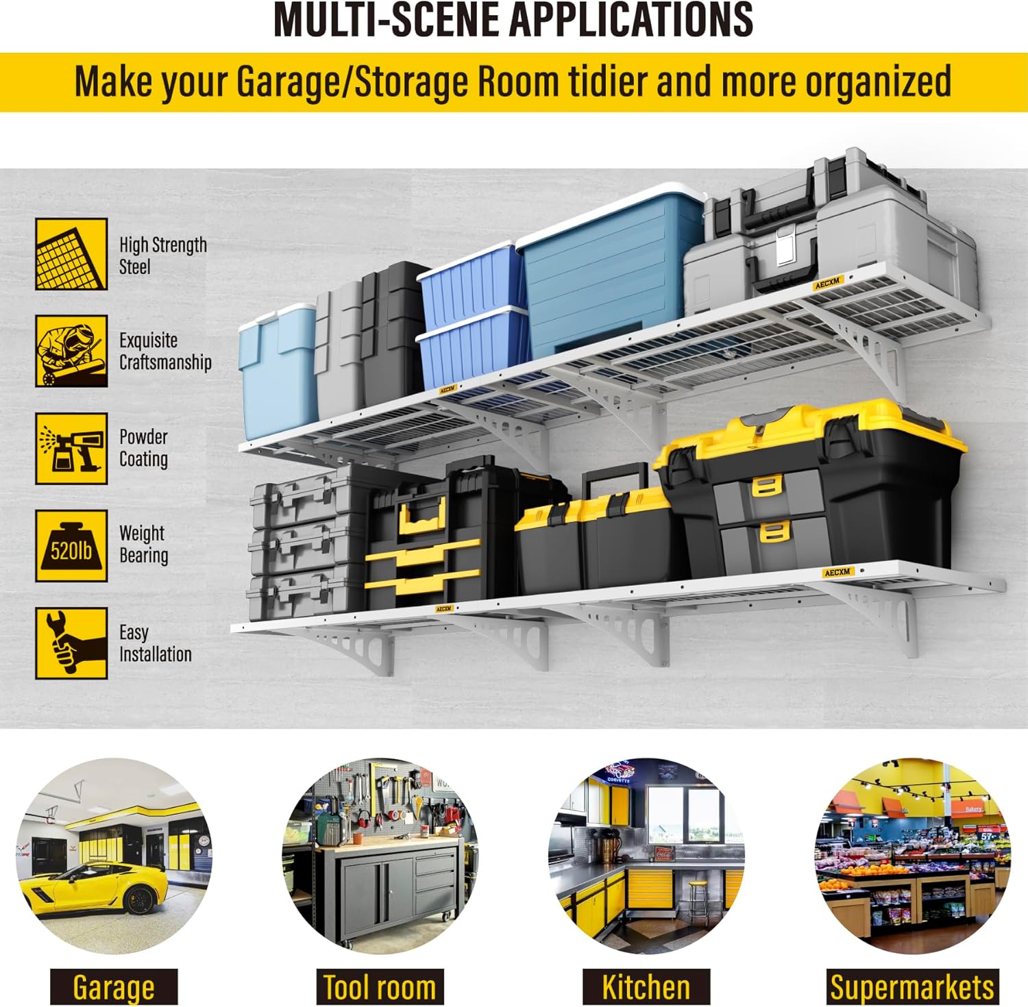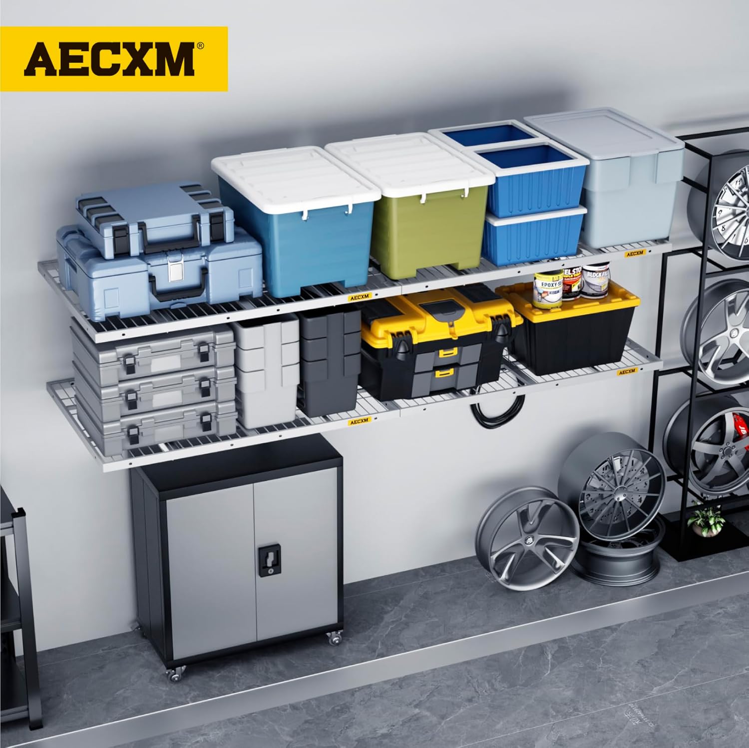 - Innovative Design: Unlike fixed-spacing systems, Aecxm garage storage shelves wall mounted feature sliding rail screws, allowing installation on wood studs spaced anywhere within the 48-inch garage shelf length. No more compatibility issues with uneven stud spacing