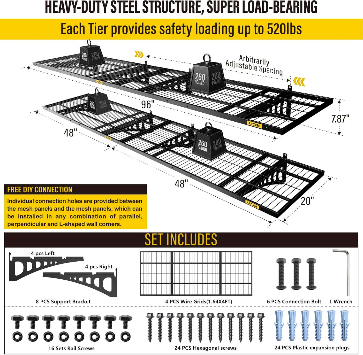 - Customer Support: Aecxm offers full after-sales service to protect your purchase. Contact us anytime for assistance. (Note: For brick or concrete walls, use expansion anchors to securely fasten the heavy duty wire shelving after drilling.)