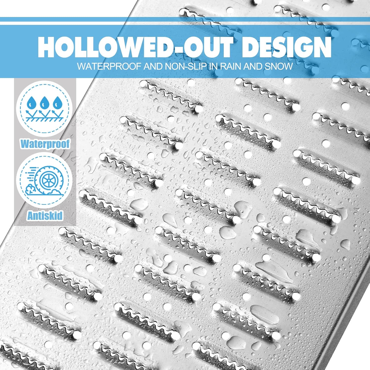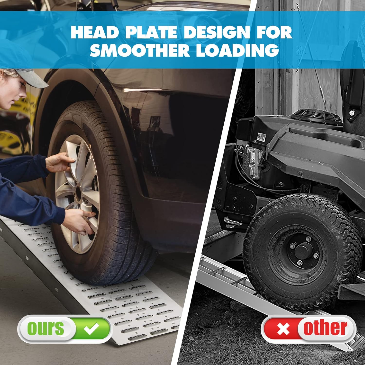 - 【Loading Ramps-Intensive Punching Design】: The punching design on the motorcycle ramp is denser than the grid design, preventing the wheel from getting stuck and falling. It also improves friction, prevent vehicles and machine from sliding.And It prevents rainwater from accumulating,suitable for use in all weather conditions