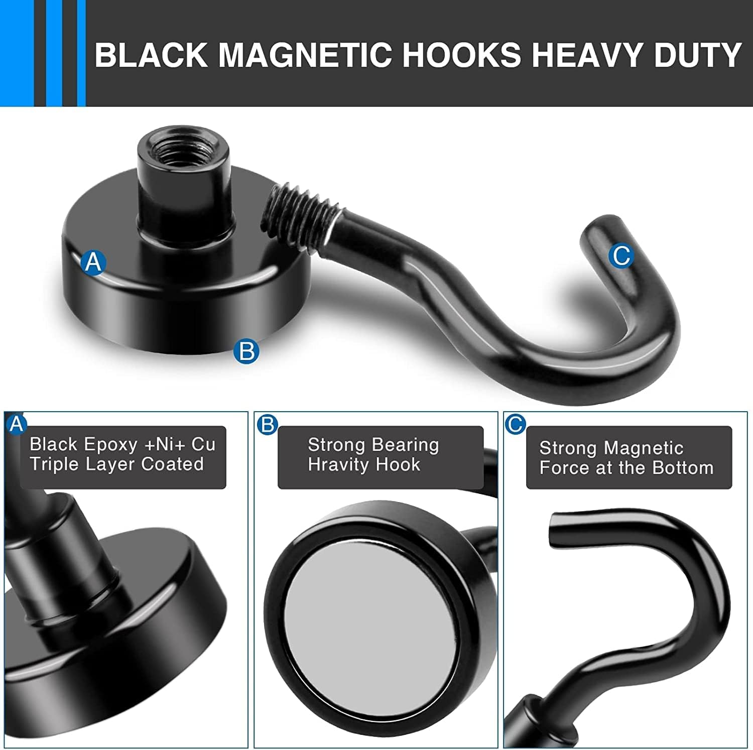 - 【INDUSTRIAL GRADE】: 30 lbs tension of black magnetic hook is based on the direction of tension perpendicular to the contact surface -- reduced by 2/3 if magnet hooks are used horizontally.Please note that the tension of the magnet hook is also affected by the direction, the material of the contact surface and other factors.