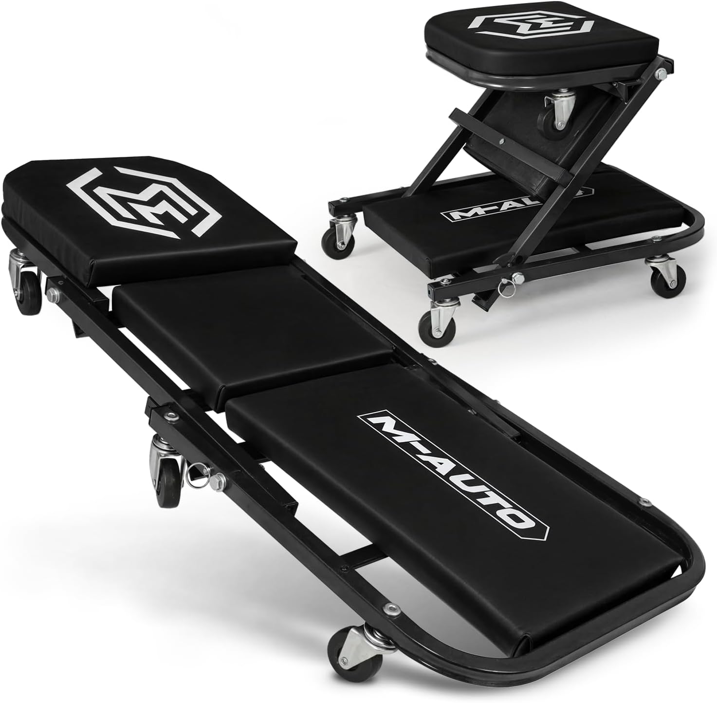 M-AUTO Foldable Z Creeper 2-in-1 Rolling Folding Car Creeper & Seat, 36" Adjustable Roller Garage Chair Lay Down or Sit, 330LBS Capacity Under Car Roller Creeper with 6 Swivel Casters, Black
