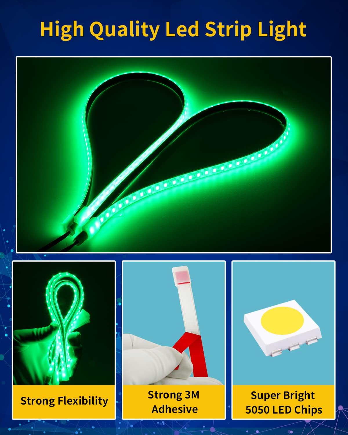 - 【Super Bright】Our 12V auto led light strip is made of high quality ABS Material and 5050 led chips,high luminous efficacy, Long lifespan >50,000 hours,UL approved, it won't get too hot even it works long time.