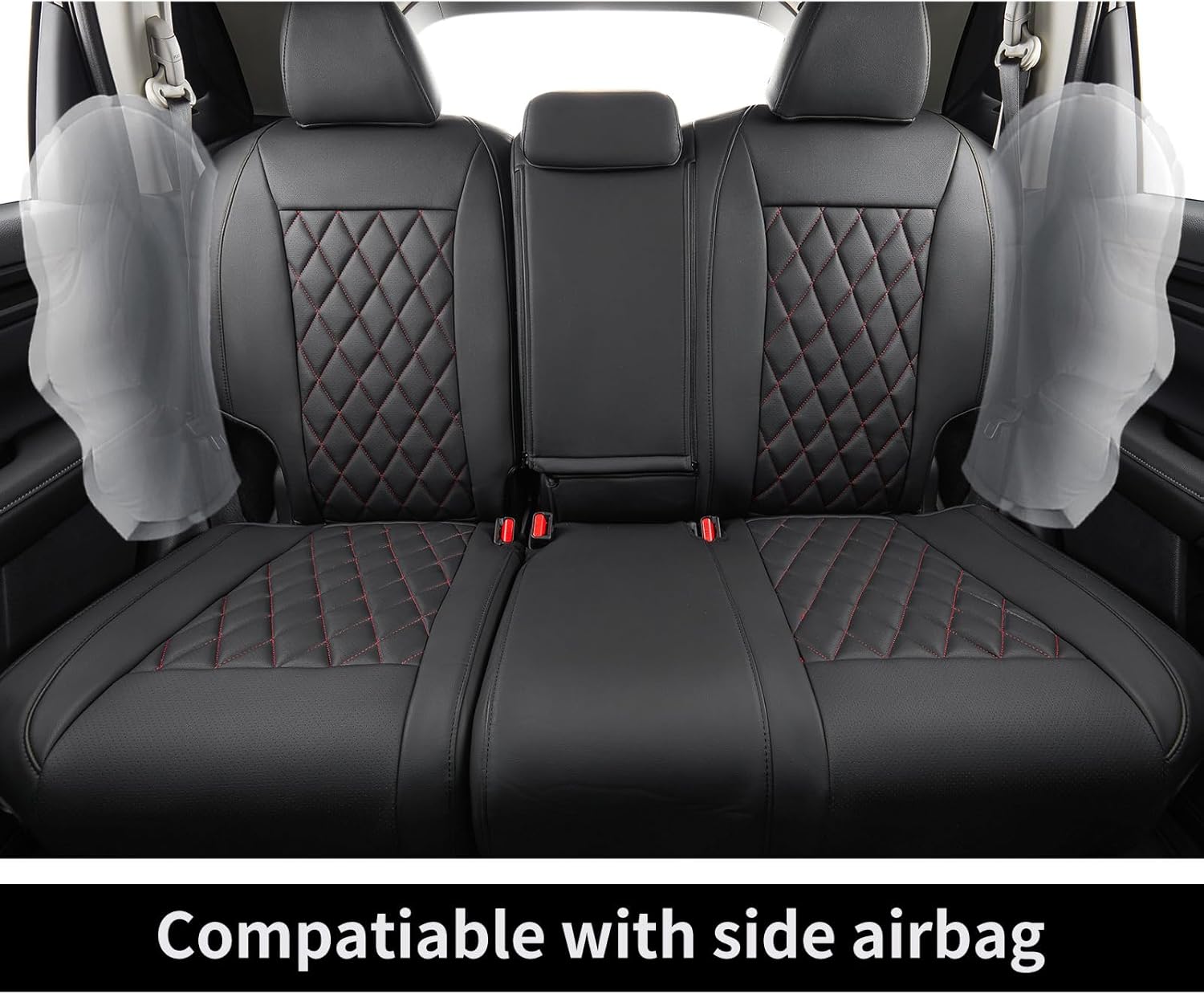 coverdream CRV Leather Seat Covers for 2023-2025 2026 Honda CRV LX,EX,EX-L,Sport Series,Hybrid,Fully Covered,Airbag Compatible Waterproof Car Seat Protector (Full Set,Black/Red)