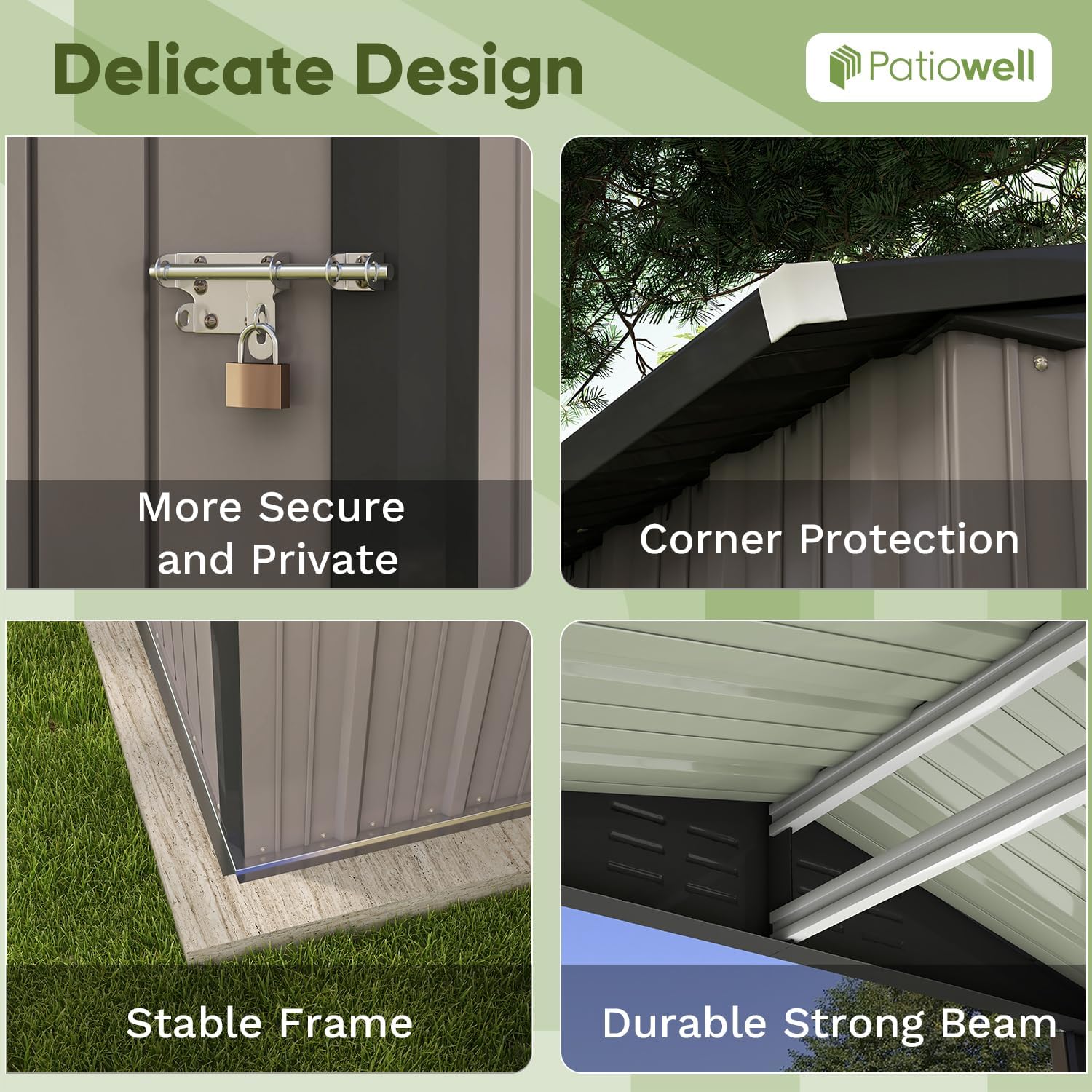 - Durable & Sturdy Structure: The sturdy frame structure can provide enough stability to the shed, and the galvanized sheet material is rust and UV resistant with a long service life. Each panel is closely connected, and has good weather resistance.