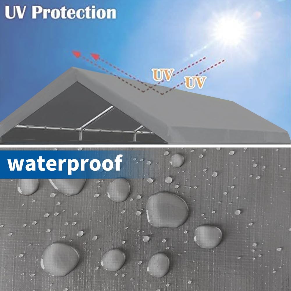 12'x20' Upgraded Carport Replacement Top Canopy Cover for Car Garage Shelter Tent Party Tent with Ball Bungees Grey (Only Top Cover, Frame is not Included)